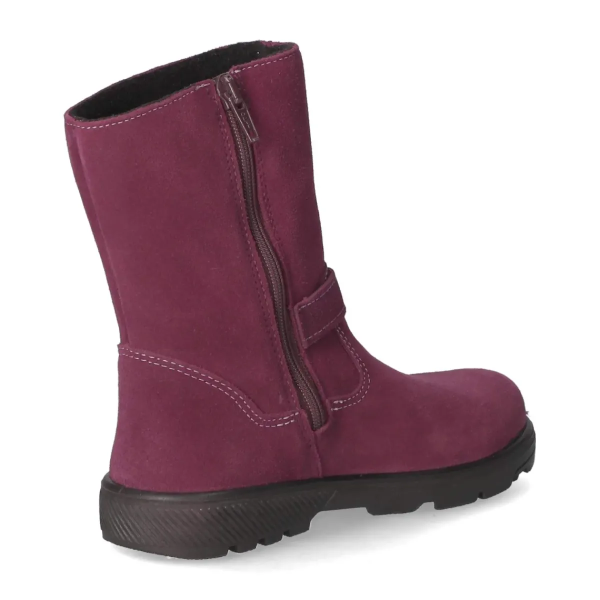 Die Stiefeletten GRETA von Ricosta verbinden kindgerechten Komfort mit verspielter Optik. Das sehr weiche Rauleder zeigt sich in lebhaftem Violett und wird von hübschen Blumenmotiven, modischen Ziernähten und einem Zierriemen akzentuiert. Ein weiches Warmfutter sowie die textile Wechseldecksohle sorgen für behagliches Klima, während Ricosta-Tex verlässlichen Nässeschutz und Atmungsaktivität bietet. Der seitliche Reißverschluss ermöglicht einen bequemen Einstieg, die runde Spitze und das normale Größenprofil schenken zusätzlichen Tragekomfort. Eine flexible, rutschhemmende Profilsohle begleitet sichere Schritte auf nassem und trockenem Untergrund. Modetipp: Zu Thermoleggings, Strickkleid und Steppjacke setzt das Violett frische Akzente.