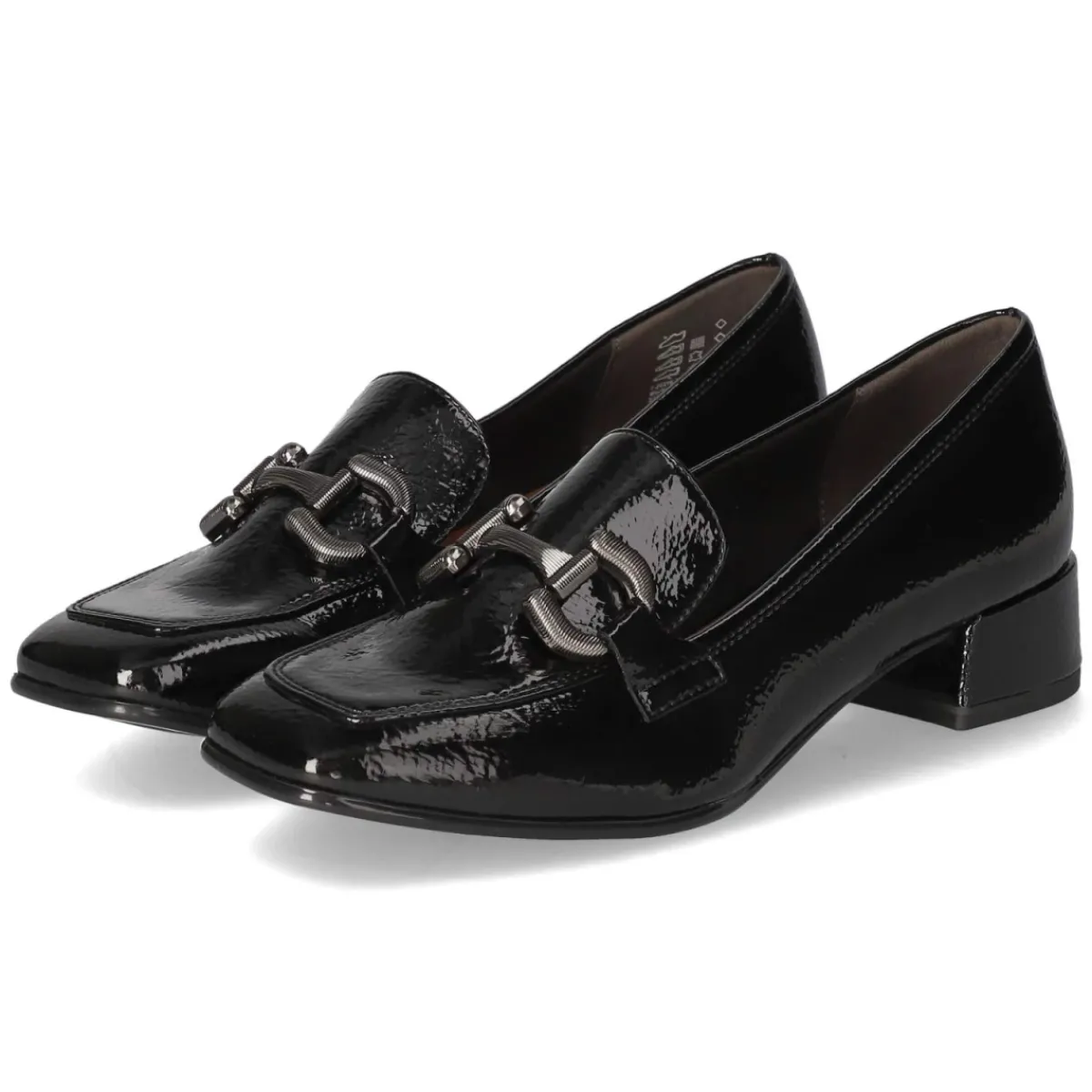 Dieser Trotteur von Tamaris verbindet zeitlose Eleganz mit hohem Tragekomfort. Die edle Lackoptik in klassischem Schwarz verleiht Outfits sofort eine gepflegte Note, während der 3,5 cm hohe Blockabsatz stabilen Halt und eine angenehme Höhe bietet. Dank rund gearbeiteter Schuhspitze und normaler Passform entstehen entspannte Proportionen, die den Fuß optisch schmal wirken lassen. Das pflegeleichte Obermaterial aus Synthetik und die ebenfalls synthetische, weich gepolsterte Decksohle sorgen für ein angenehmes Laufgefühl über viele Stunden. Ohne Verschluss gestaltet sich der Einstieg unkompliziert, ideal für den schnellen Griff am Morgen oder den Wechsel im Büro. Vielseitig kombinierbar von Business bis Abend. Modetipp: Zu einer verkürzten Zigarettenhose und einer seidigen Bluse tragen, dazu eine schmale Clutch – so entsteht ein souveräner, moderner City-Look.