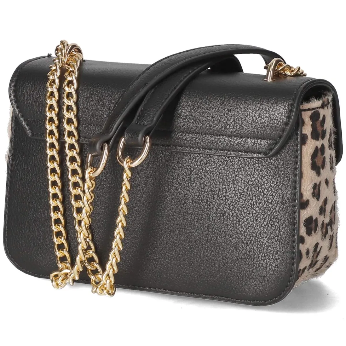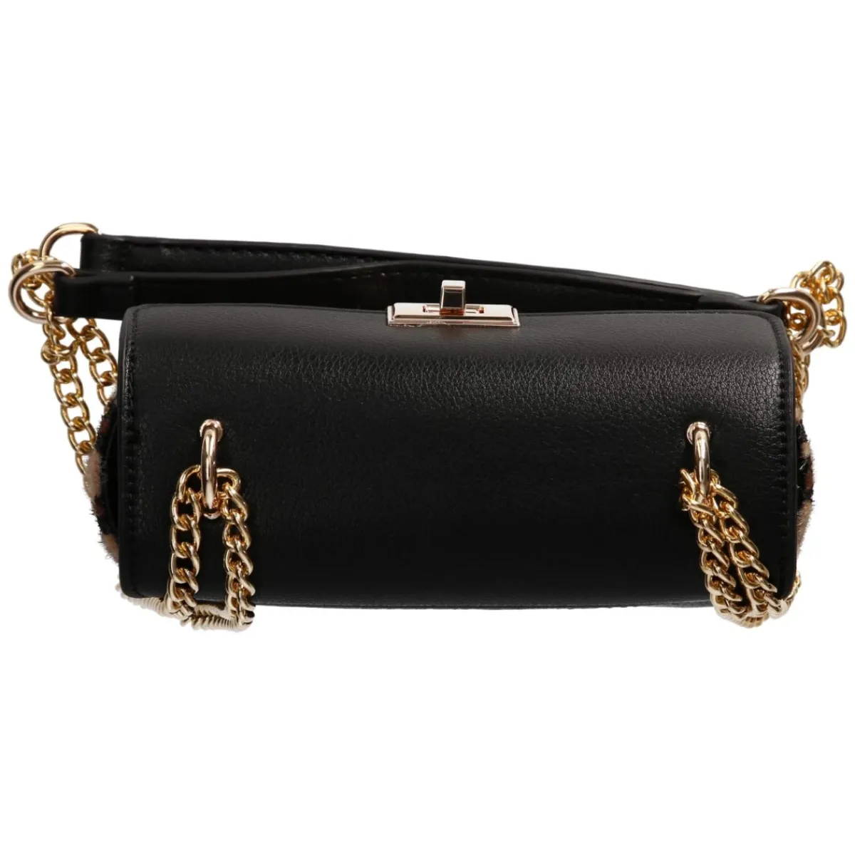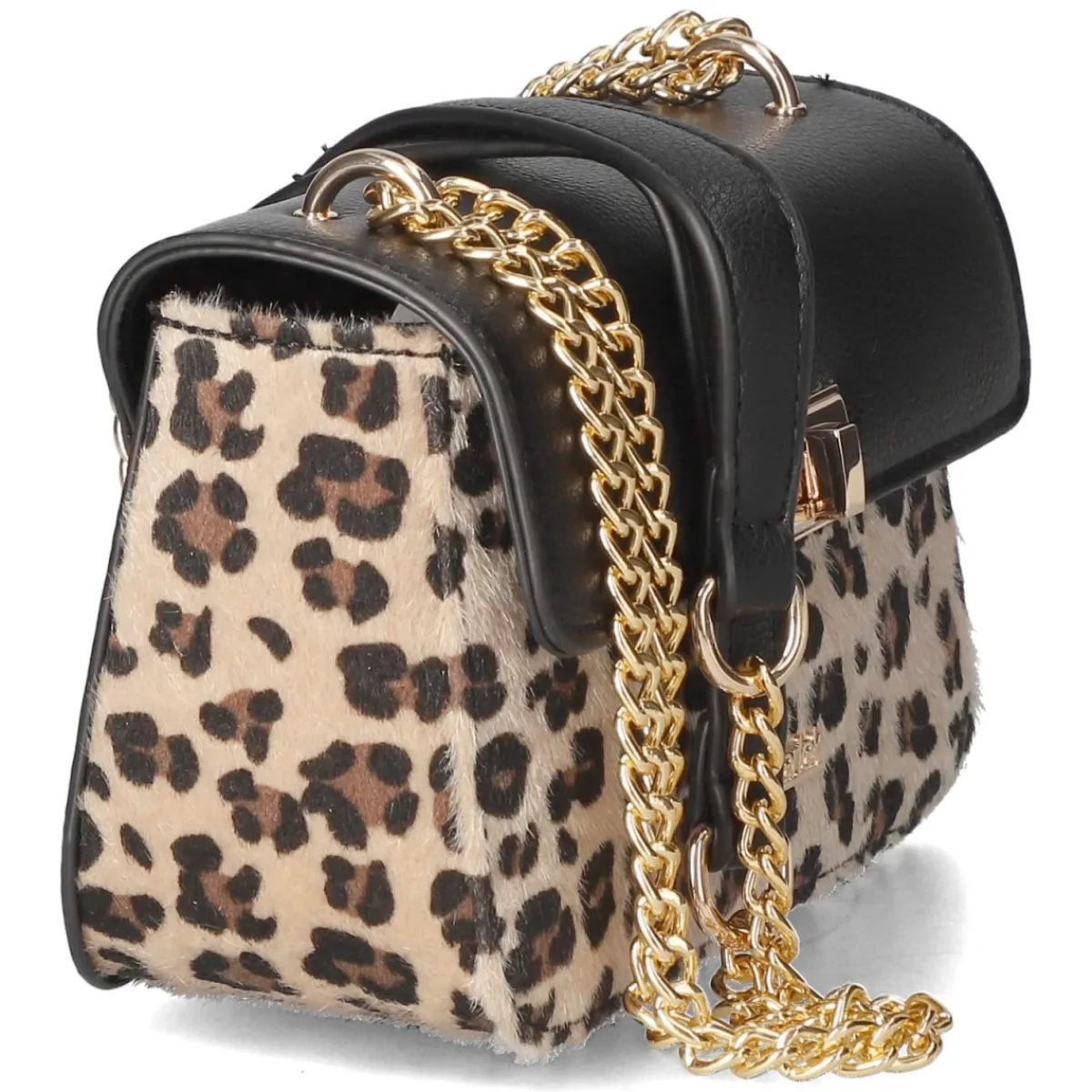 Diese Umhängetasche für Damen vereint kompaktes Format mit markantem Auftritt. Mit Maßen von ca. 12 x 18 x 6 cm und einem Volumen von etwa 1 Liter bietet sie Platz für Smartphone, Kartenetui und Schlüssel, während der stabile Korpus die Form zuverlässig hält. Der beige Grundton wird von Einsätzen aus schwarzem Kunstleder und weichem Kunstfell in Leopard-Optik kontrastiert, akzentuiert durch goldfarbene Elemente und einen prägnanten Markenschriftzug. Der Überschlag mit Drehverschluss schließt sicher, innen sorgen ein Reißverschlussfach und ein Steckfach für Übersicht. Die verstellbare Schulterkette mit ca. 140 cm erlaubt Tragevarianten von Schulter bis Crossbody. Modetipp: Als Eyecatcher zu monochromen Looks in Schwarz oder Creme stylen, etwa mit schmalem Rollkragen und weit geschnittener Hose, damit der Animal Print elegant im Mittelpunkt steht.