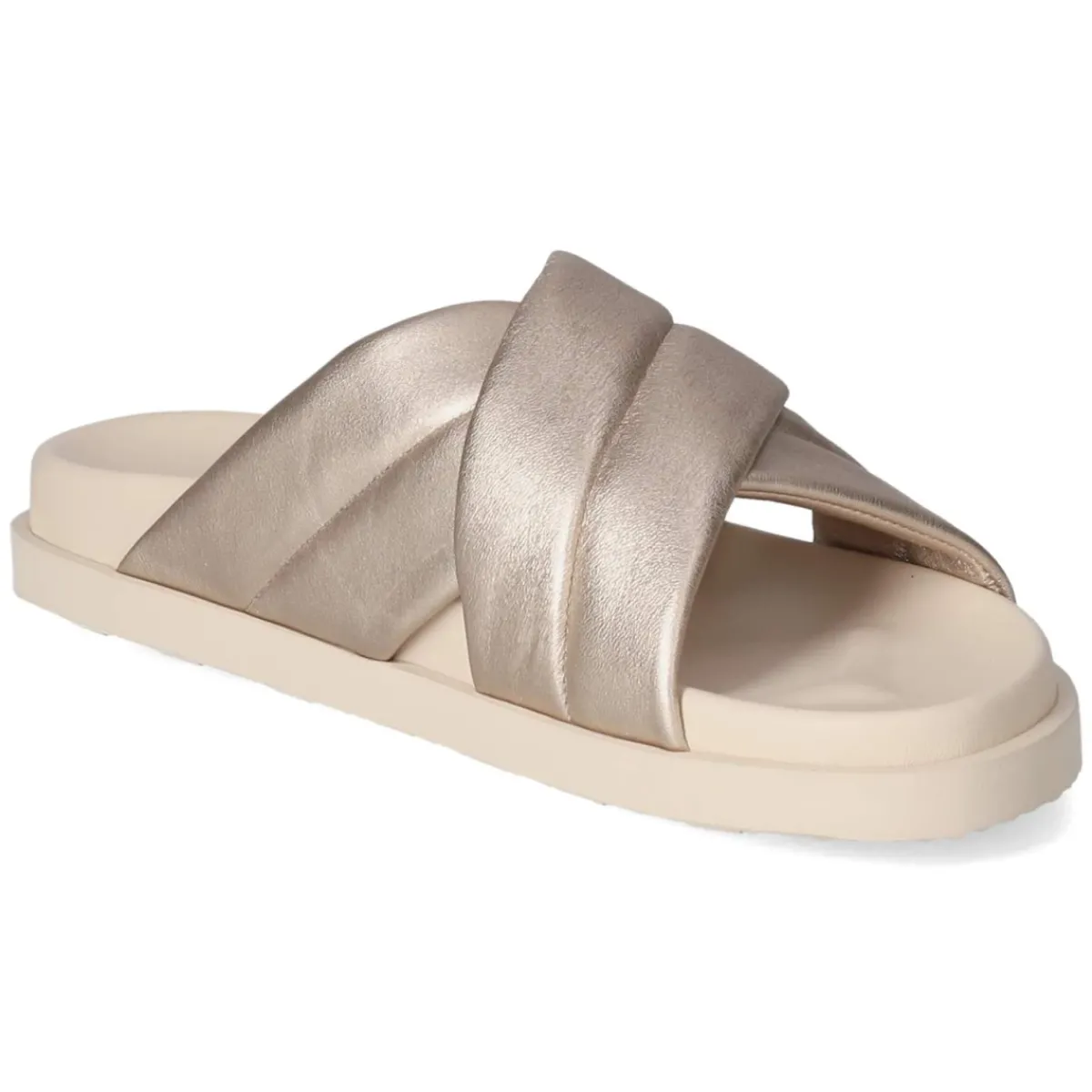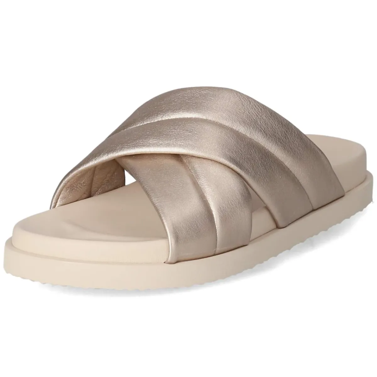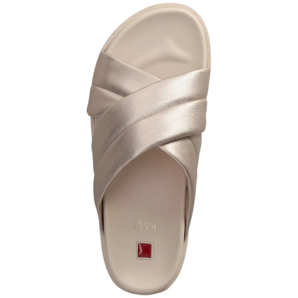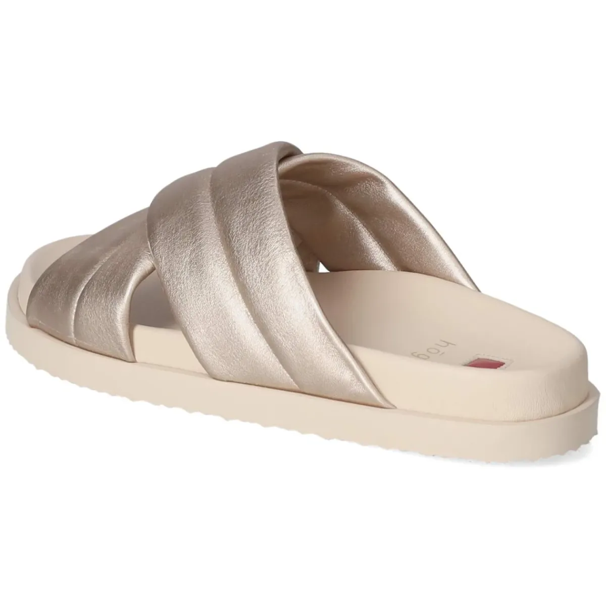 Högl interpretiert die klassische Damen-Pantolette in Gold als luxuriösen Begleiter für Alltag und Anlass. Die edle Optik lebt von der elegant schimmernden Oberfläche des glatten Leders, während zwei gekreuzte Riemen den Fuß feminin umspielen. Die offene Schuhspitze betont Leichtigkeit, die flexible, griffige Laufsohle sorgt für souveränen Tritt auf Stadtpflaster und Parkett. Innen überzeugt eine Lederdecksohle; das gepolsterte, vorgeformte Fußbett schenkt sanfte Dämpfung und anhaltenden Komfort. Ohne Verschluss gestaltet sich der Auftritt mühelos, die Passform fällt normal aus. Ein Modell für Erwachsene, das diskrete Eleganz mit Funktion verbindet und vom frühen Brunch bis zum späten Event trägt. Modetipp: Besonders harmonisch wirkt der Goldton zu Creme, Ecru und Schwarz; zu fließenden Satinkleidern oder einer Culotte mit feinem Strick kommt der Schimmer modern zur Geltung.