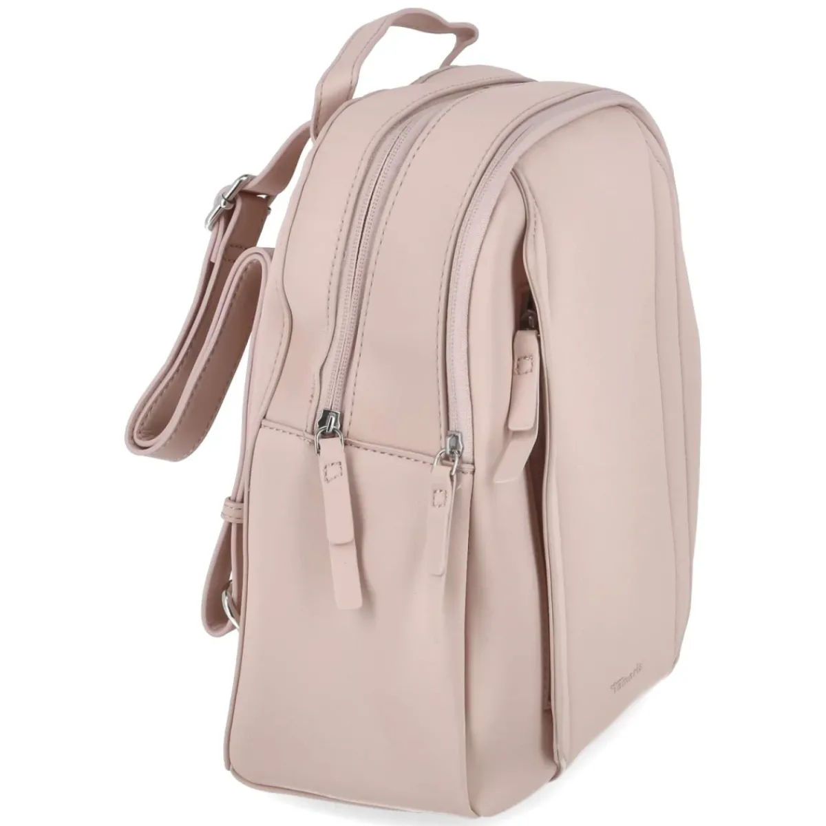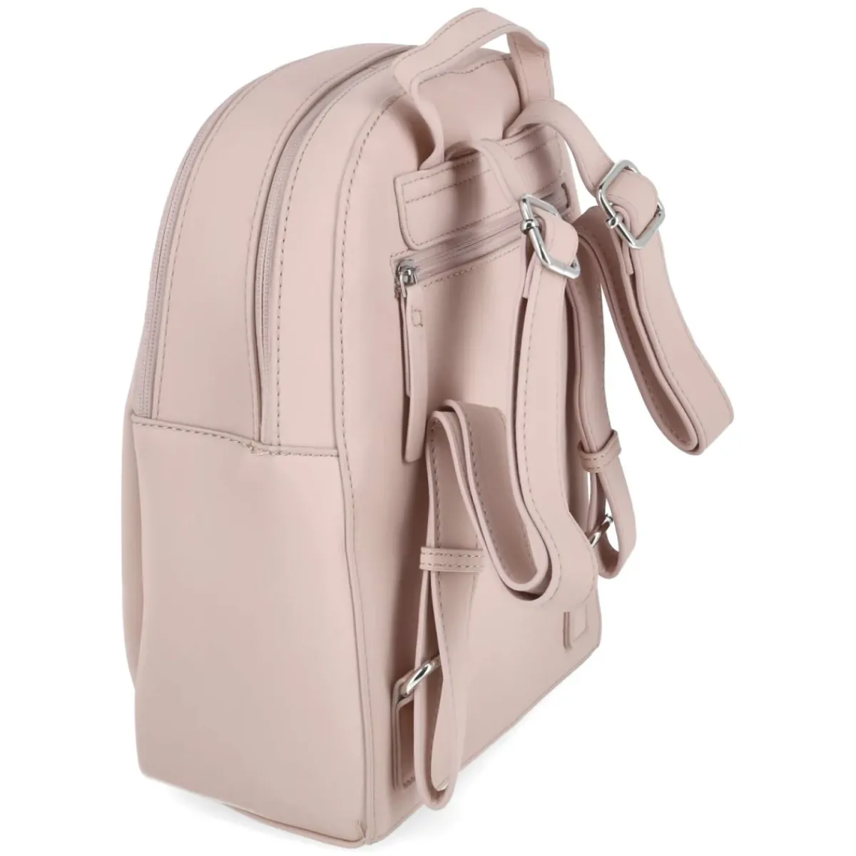 Rucksack KIMI zeigt sich in zartem Rosa mit edlen Akzenten in Altrosa und verbindet feminine Optik mit kluger Organisation. Das kompakte Format von ca. 30 x 25 x 12 cm fasst rund 7 Liter und bleibt dabei angenehm handlich. Ein Reißverschluss sichert das Hauptfach, während ein großes Frontfach mit Steckfach und RV-Fach sowie eine verdeckte Fronttasche mit seitlichem Eingriff schnellen Zugriff erlauben. Im Rückenteil wartet ein gepolstertes Steckfach, ergänzt um ein separates Rückenfach. Zierverstellbare Tragegurte (ca. 90 cm), ein stabiler Henkel und der verstärkte Boden sorgen für Komfort und Formstabilität. Ideal für den Alltag moderner Damen zwischen Büro, Uni und Café. Modetipp: Ton-in-Ton mit Pastelltönen stylen, etwa zu einem plissierten Midirock, feinem Strick und weißen Sneakern für einen frischen City-Look.
