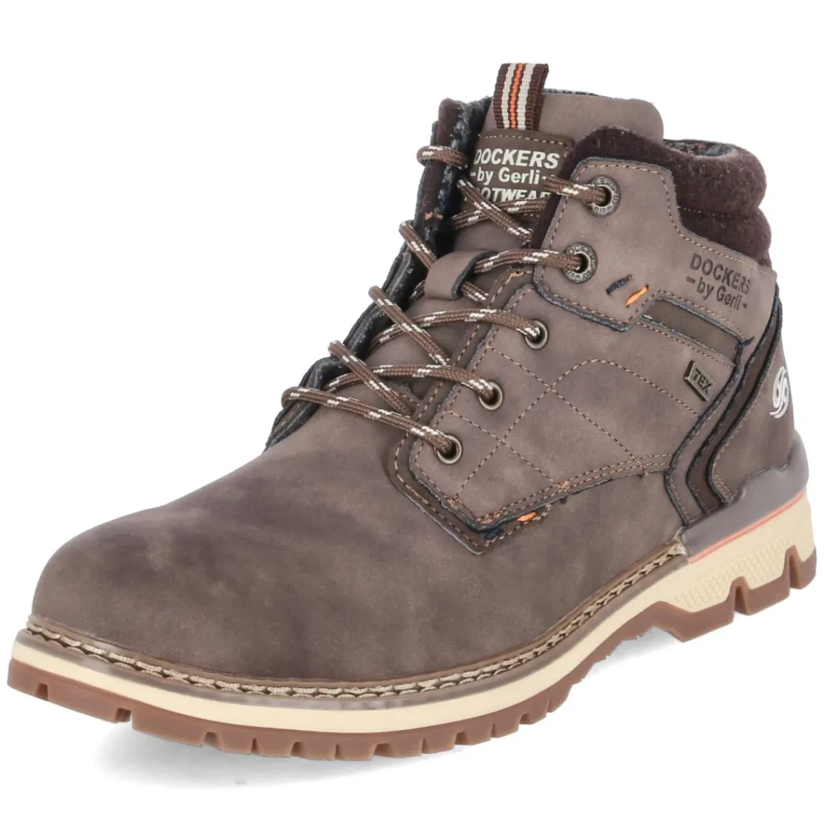 Der Herren-Boot von Dockers setzt auf eine klare, maskuline Linie mit natürlichem Look in warmem Braun. Das robuste Obermaterial aus Synthetik hält den Alltag souverän aus, während atmungsaktive Eigenschaften und das leichte Futter an kühlen Tagen für ein ausgeglichenes Fußklima sorgen. Die Kombination aus Schnürsenkeln und praktischem Reißverschluss erleichtert den Einstieg, unterstützt von gepolstertem Schaftrand und Anziehlasche. Ein verstärkter Fersenbereich verleiht zusätzliche Stabilität, die flexible, rutschfeste Profilsohle bietet verlässlichen Grip. Dank Wechselfußbett lässt sich der Tragekomfort individuell anpassen, die textile Decksohle ergänzt das angenehme Innenleben. Mit runder Spitze, normaler Passform und dynamischen Ziernähten wird der wasserfeste, wasserabweisende Boot zum vielseitigen Begleiter für Erwachsene. Modetipp: Zu Raw-Denim, Strickpullover und gewachster Fieldjacke entsteht ein lässig-urbanes Herbstoutfit.