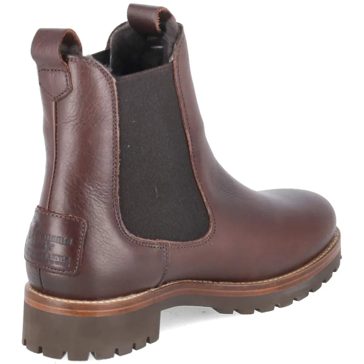 Der Chelsea Boot FRANCESCA IGLOO von Panama Jack vereint wetterfeste Funktion und zeitlose Ästhetik. Das hochwertige Leder in sattem Braun umschließt einen warm gefütterten Schaft mit echtem Lammfell, der bei kühlen Temperaturen zuverlässig wärmt, während die atmungsaktive Ausstattung für ausgeglichenes Fußklima sorgt. Die wasserfesten Eigenschaften und die robuste Profilsohle geben Sicherheit auf nassem Untergrund. Dank zwei Anziehlaschen und dem Schlupfdesign gelingt der Einstieg mühelos. Ein 3 cm hoher Blockabsatz, die runde Spitze sowie die mit Logo verstärkte Ferse unterstreichen den markanten Look. Die lederne Decksohle vermittelt ein natürliches Tragegefühl, das herausnehmbare Fußbett bietet Komfort und die Option für eigene Einlagen. Die Passform fällt normal aus und lässt sich vielseitig kombinieren – vom City-Styling bis zum Wochenend-Look. Modetipp: Harmonisch wirkt der Boot zu Wollmantel, Strickkleid und blickdichter Strumpfhose in gedeckten Tönen.