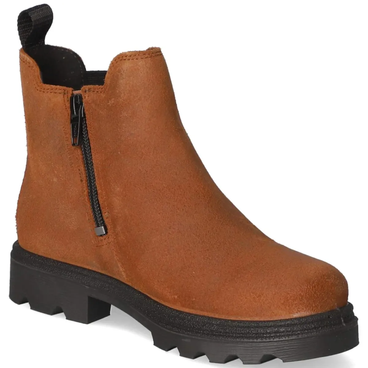 Der Ecco Chelsea Boot GRAINER K verbindet kindgerechten Komfort mit klassischer Silhouette. Das Obermaterial aus weichem Rauleder in warmem Braun wirkt wertig und punktet mit wasserabweisender Ausrüstung – ideal für unbeständige Tage. Die runde Schuhspitze gibt Zehen ausreichend Raum, während atmungsaktives Echtleder für ein ausgeglichenes Fußklima sorgt. Ein seitlicher Reißverschluss mit Elastikeinsatz und Anziehlasche ermöglicht einen bequemen Einstieg. Das leichte Fleecefutter wärmt an kühlen Tagen, die textile Wechseldecksohle unterstützt einfache Pflege. Eine flexible, rutschhemmende Profilsohle bietet sicheren Halt auf verschiedenen Untergründen. Der Schuh fällt größengetreu aus und sitzt zuverlässig am Fuß. Modetipp: Zu Cordhose und Steppjacke entsteht ein zeitloser Look, der im Alltag ebenso überzeugt wie bei Familienausflügen.