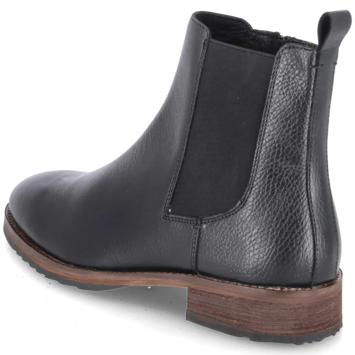 Kaerlek präsentiert klassische Chelsea Boots in tiefem Schwarz, gefertigt aus glattem, langlebigem Echtleder. Die runde Schuhspitze und die verstärkte Ferse verleihen dem Design eine klare, maskuline Linie, während der seitliche Elastikeinsatz und die Anziehlasche das Anziehen zusätzlich erleichtern. Ein bequemer Reißverschlußeinstieg sorgt für komfortables Hineinschlüpfen, die flexible, griffige Laufsohle überzeugt mit sicherem Tritt auf urbanem Terrain. Der 4 cm hohe Blockabsatz bietet Stabilität und eine angenehme Höhe, die Decksohle aus Leder sorgt für ein wertiges Fußklima. Das Modell fällt normal aus und richtet sich an Herren, die einen zuverlässigen Begleiter für jeden Tag suchen. Modetipp: Mit Raw-Denim, weißem Oxford-Hemd und dunkelgrauem Wollmantel entsteht ein smart-casual Look, der vom Büro bis zum Dinner überzeugt.