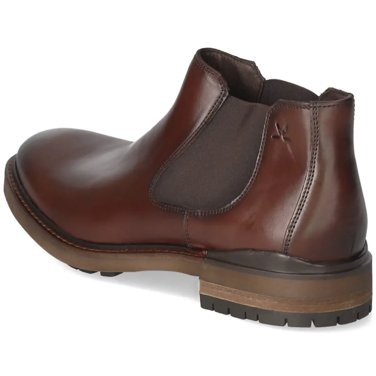 Die Chelsea Boots VIBE 315 von LLoyd vereinen zeitlose Silhouette und komfortable Ausstattung. Das braune Glattleder aus atmungsaktivem Echtleder sorgt für ein angenehmes Fußklima, während die rund zulaufende Kappe und der 2 cm hohe Blockabsatz den klassischen Ausdruck betonen. Dank Schlupfdesign mit elastischen Einsätzen sitzt der Schuh sicher am Fuß und lässt sich mühelos an- und ausziehen. Die flexible, griffige Laufsohle bietet Halt im Alltag, die verstärkte Ferse stabilisiert zusätzlich. Eine synthetische Decksohle zeigt sich pflegeleicht und strapazierfähig, der Fit fällt normal aus. Seitliche Prägung und fein gesetzte Nähte runden den Look ab. Modetipp: Zu dunkler Raw Denim, Rollkragen und Wollmantel entsteht ein souveränes Ensemble zwischen Business Casual und Weekend-Style.