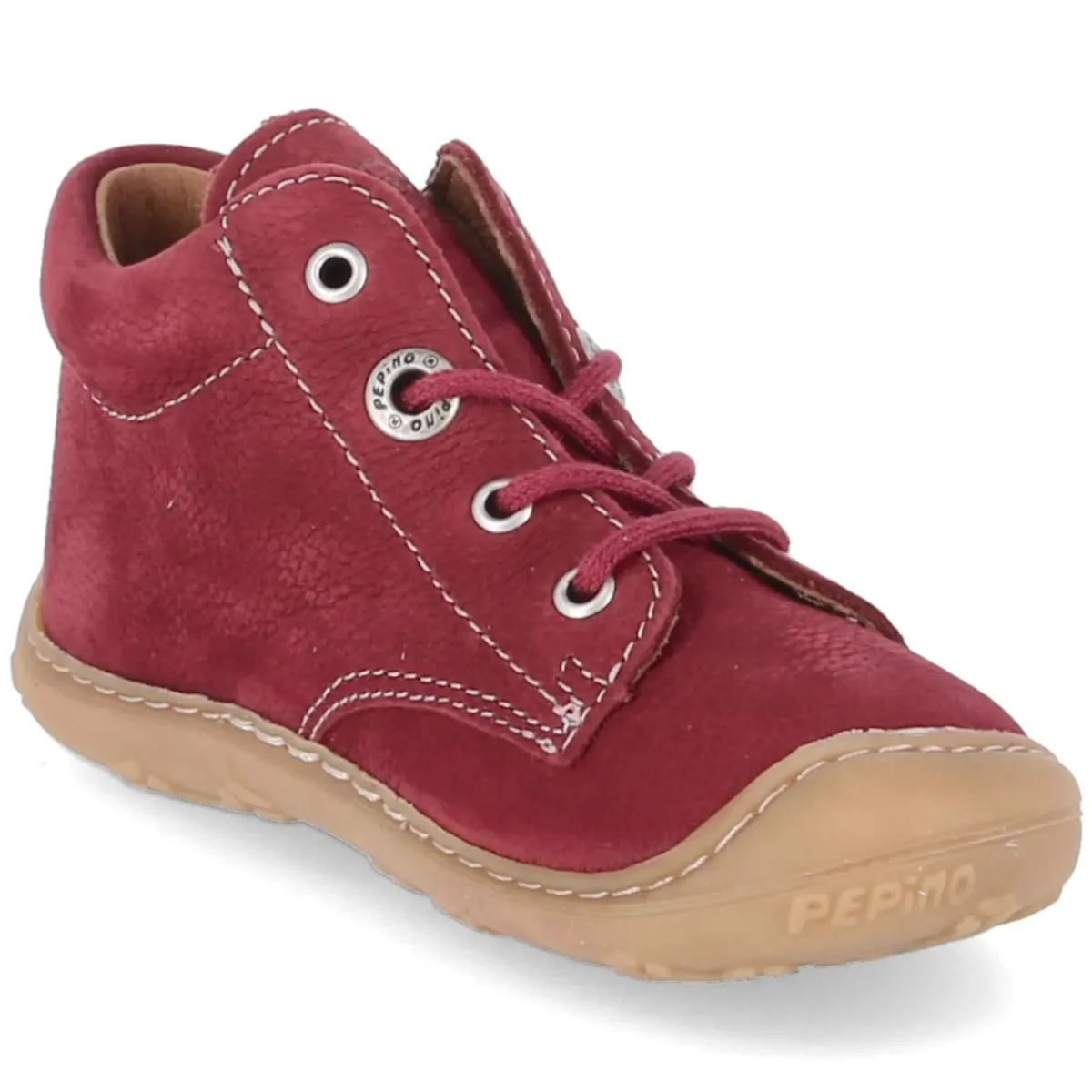 Der Lauflernschuh CORY von Pepino präsentiert sich in lebhaftem Rot und begleitet die ersten Schritte mit sicherem Halt und hohem Tragekomfort. Weiches Rauleder als Obermaterial trifft auf langlebiges Echtleder und ein hautfreundliches Lederfutter, das ein angenehmes Fußklima unterstützt. Die Lederdecksohle und der gepolsterte Einstieg verwöhnen empfindliche Kinderfüße, während die runde Schuhspitze und der verstärkte Zehenbereich zusätzliche Zehenfreiheit und Schutz bieten. Die Schnürung ermöglicht eine präzise Anpassung, das Wechselfußbett erleichtert Pflege und Passformkontrolle. Die sehr flexible, rutschhemmende Laufsohle unterstützt das natürliche Abrollen – ideal für Kleinkinder. Typische Markendetails und die moderne Optik runden das Design ab; der Schuh fällt normal aus. Modetipp: Ein fröhlicher Look entsteht mit Denim-Latzhose, gestreiftem Jersey und Strickcardigan in Naturtönen, wodurch das Rot elegant zur Geltung kommt.