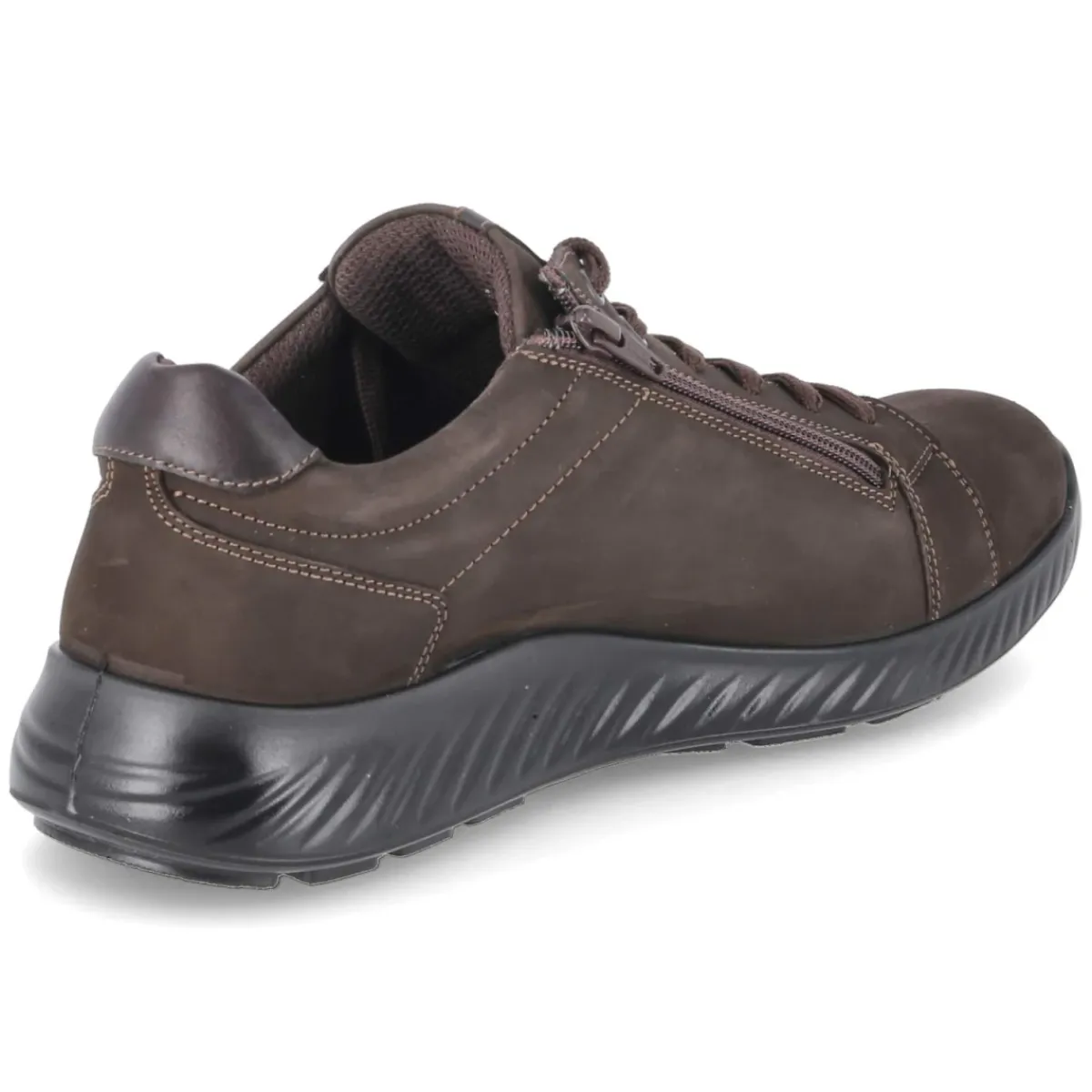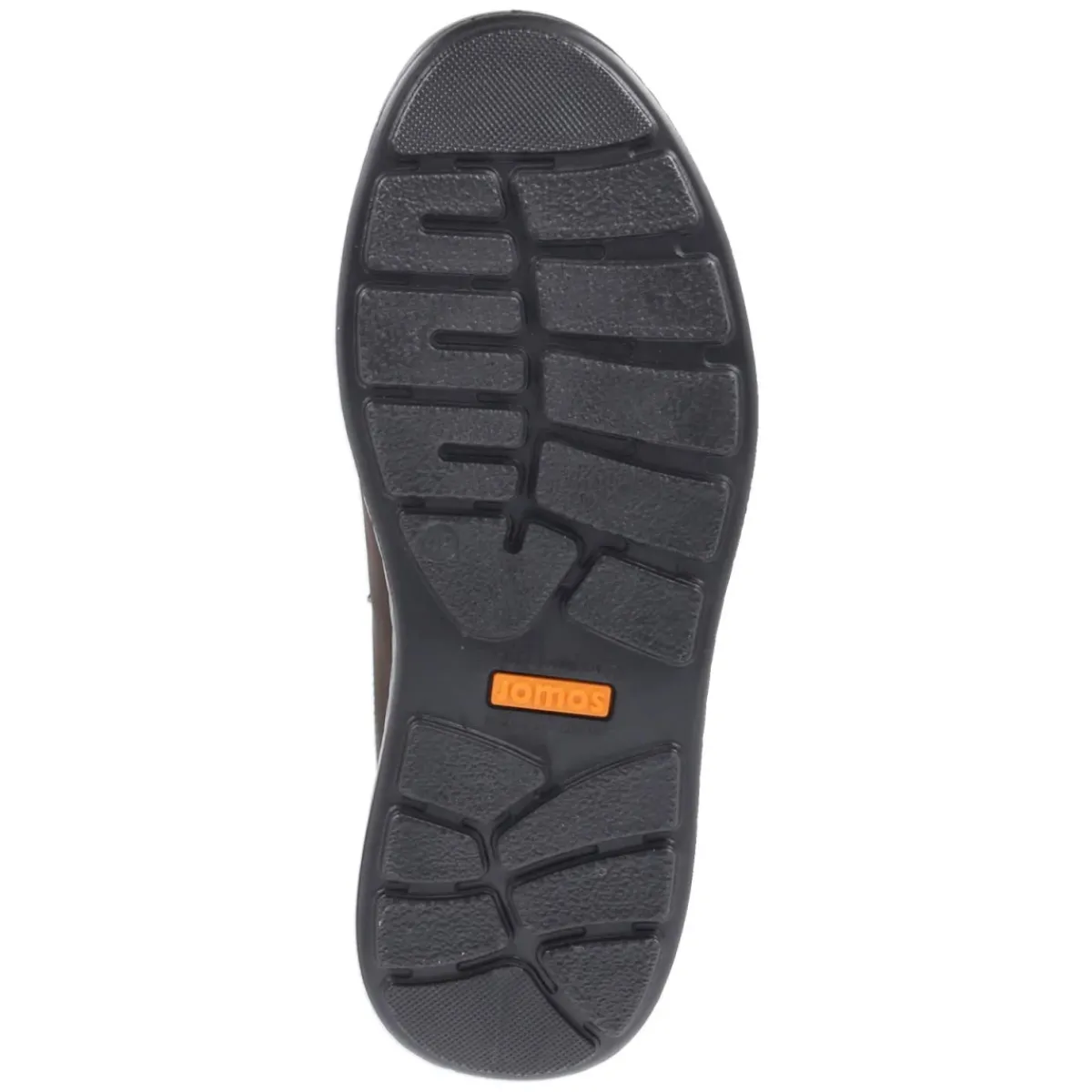 Der Herren-Halbschuh von Jomos in dunkelbraunem Rauleder vereint robuste Langlebigkeit mit dezenter Eleganz. Das hochwertige Echtleder zeigt eine fein strukturierte Oberfläche, die sich angenehm anschmiegt und den Fuß dank leicht gepolstertem Einstieg zuverlässig umschließt. Für praktischen Komfort sorgt die Kombination aus Schnürsenkeln und seitlichem Reißverschluss, die sicheren Halt und schnelles An- und Ausziehen ermöglicht. Die runde Schuhspitze gewährt Zehenfreiheit, während die textile Decksohle in Verbindung mit dem komfortablen Wechselfußbett für ein ausgeglichenes Fußklima steht. Eine flexible, rutschfeste Laufsohle und die verstärkte Ferse bieten Stabilität im Alltag. Fällt normal aus und passt mühelos zu zahlreichen Outfits. Modetipp: Zu einer sandfarbenen Chino und einem Strickpullover entsteht ein smarter Casual-Look mit ruhiger, wertiger Ausstrahlung.