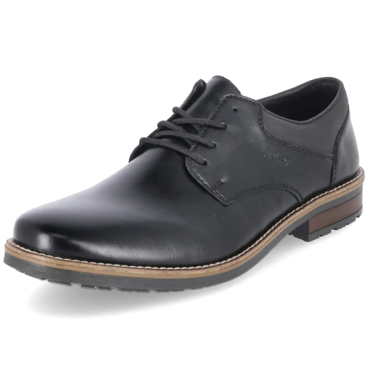 Dieser Rieker Halbschuh setzt auf zeitloses Understatement und hohen Tragekomfort. Das schwarze Obermaterial aus pflegeleichtem Kunstleder zeigt sich dezent strukturiert und betont mit runder Kappe und klassischer Schnürung den eleganten Charakter. Ein 2 cm hoher Blockabsatz und die flexible, griffige Laufsohle sorgen für solides Auftreten im Alltag, während ein gepolsterter Einstiegsbereich und die verstärkte Ferse das Fußgelenk angenehm unterstützen. Das weich gepolsterte Lederfußbett bietet angenehme Dämpfung und ein wohltuendes Fußklima, ideal für lange Tage im Büro oder in der Stadt. Die Passform fällt normal aus und erleichtert die Wahl der gewohnten Größe. Modetipp: In Kombination mit schmaler Chino, feinem Hemd und Strickcardigan entsteht ein moderner Business-Casual-Look; alternativ unterstreichen Dark-Denim und ein leichtes Overshirt die lässige Note des klassischen Designs.