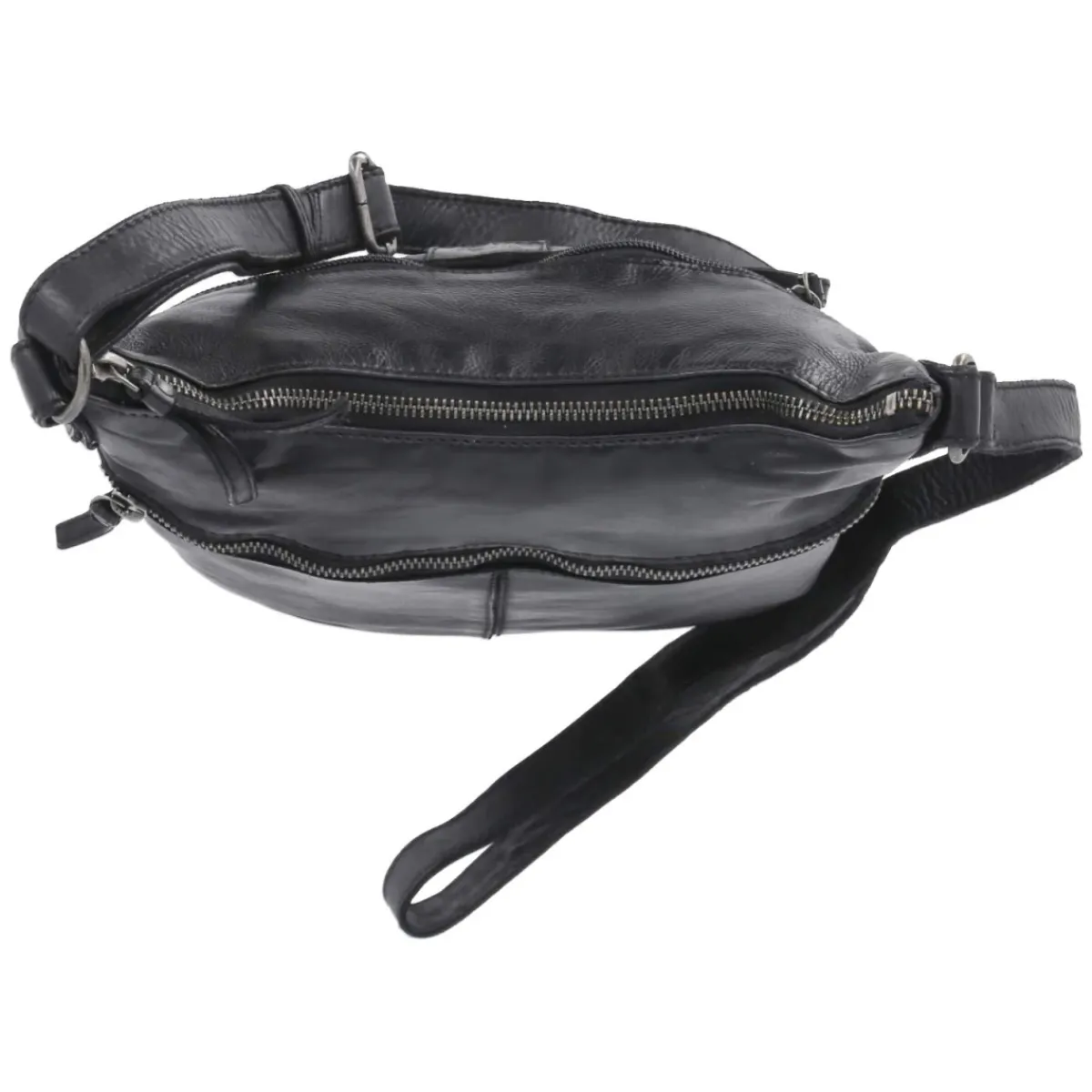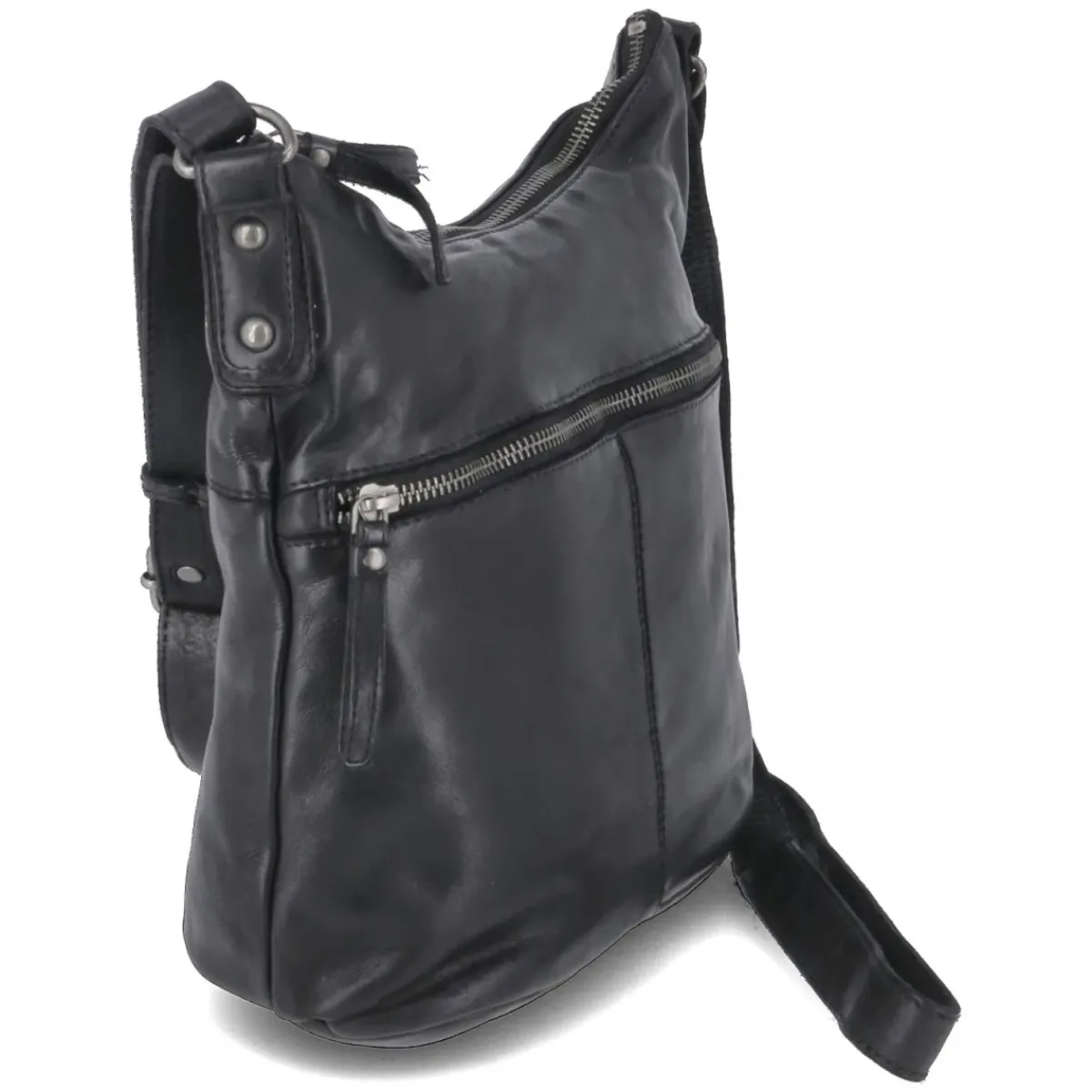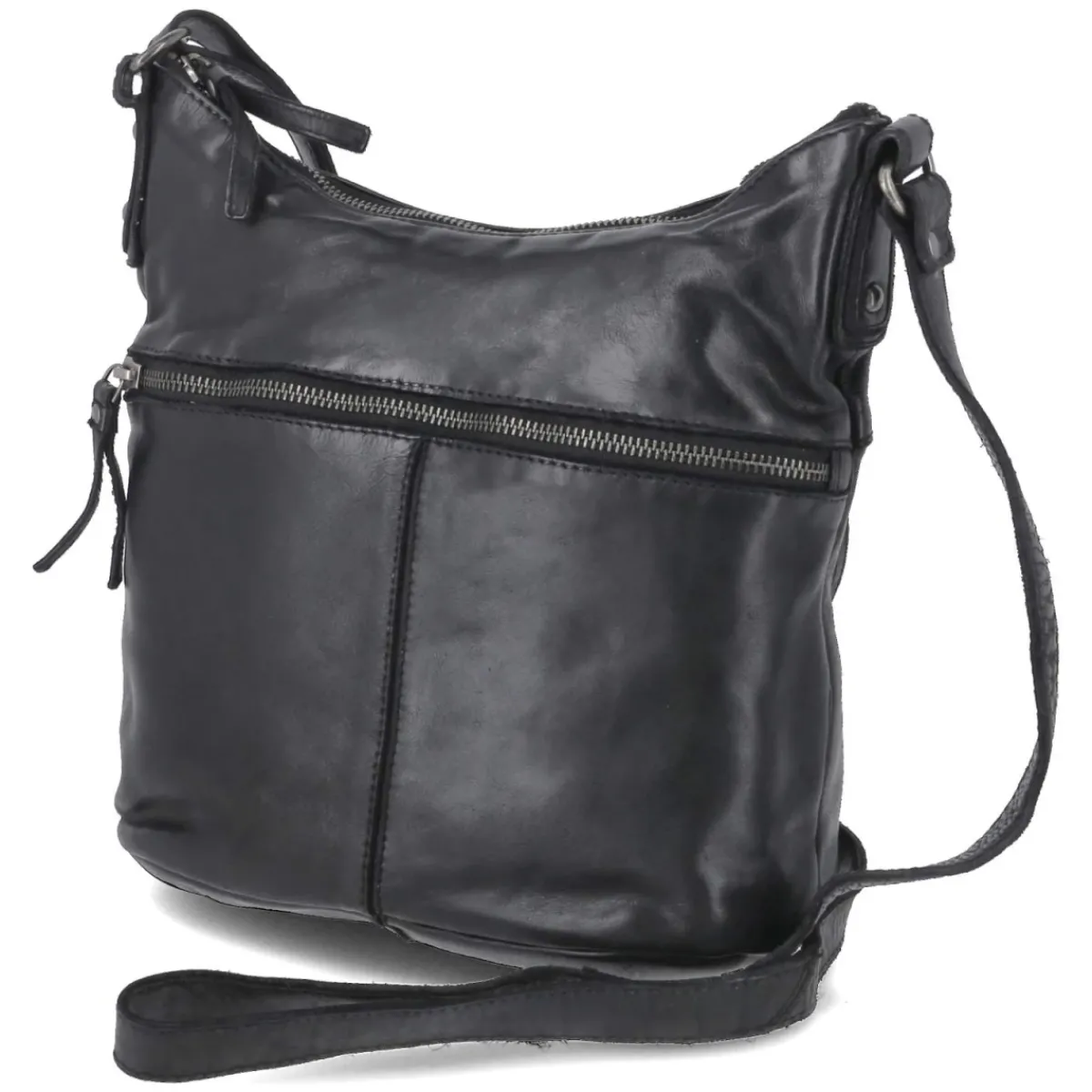 Die Hobobag in klassischem Schwarz verbindet klare Linien mit durchdachter Funktion. Mit ca. 21 x 25 x 13 cm und rund 6 Litern Fassungsvermögen bietet sie Platz für Alltagsessentials, ohne wuchtig zu wirken. Der sichere Reißverschluss, zwei Außenfächer mit Zipper sowie innen zwei Reißverschlussfächer, zwei Steckfächer und ein Stiftplatz sorgen für Ordnung und schnellen Zugriff. Die markante Mittelnaht betont die weiche, geschwungene Silhouette, während der verstärkte Boden Formstabilität verleiht. Der verstellbare Gurt (ca. 140 cm), an hochgezogenen Taschenenden befestigt, ermöglicht komfortables Tragen über Schulter oder quer. Ein urbaner Begleiter vom Meeting bis zum Dinner. Modetipp: Mit Oversize-Blazer, geradem Denim und Chunky-Loafern entsteht ein lässig-eleganter Look.