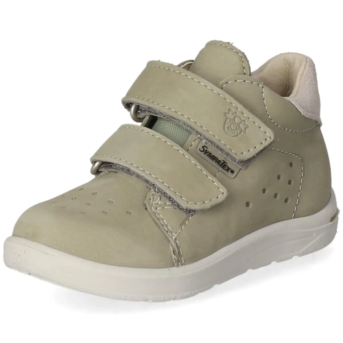 Der Klettschuh LAAS von Pepino präsentiert sich in frischem Grün und kombiniert kindgerechten Komfort mit zuverlässiger Alltagstauglichkeit. Weiches Rauleder schmiegt sich angenehm an, während die runde Schuhspitze und die Weite Mittel natürliche Zehenfreiheit bieten. Die Sympatex-Membran schützt vor Nässe und bleibt zugleich atmungsaktiv – ideal für Spielplatz, Kita und Spaziergänge. Ein gepolstertes Wechselfußbett unterstützt kleine Füße sanft, kann bei Bedarf herausgenommen oder ausgetauscht werden, und die Decksohle aus Leder sorgt für ein angenehmes Fußklima. Der leicht gepolsterte Einstieg und der bequeme Klettverschluss erleichtern das An- und Ausziehen, die verstärkte Ferse gibt Halt bei jedem Schritt. Eine flexible, rutschhemmende Laufsohle macht jede Bewegung mit. Fällt normal aus. Modetipp: Zu Jeans, Softshelljacke und gemusterter Beanie entsteht ein lässiger Look, der das kräftige Grün stilvoll aufgreift.