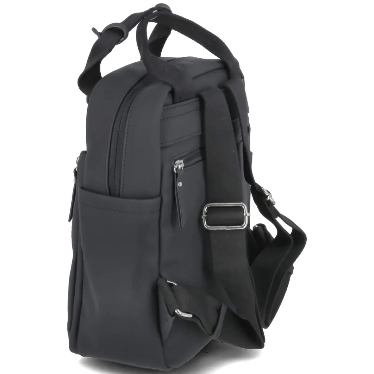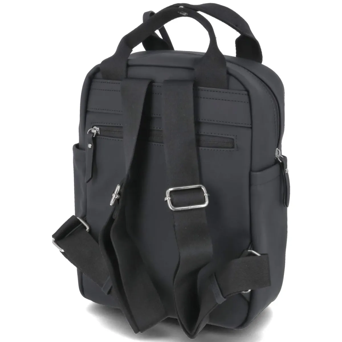 Schwarz, kompaktes Format und klare Linien: Dieser Rucksack für Damen verbindet Alltagstauglichkeit mit eleganter Zurückhaltung. Das Hauptfach wird sicher per Reißverschluss geschlossen und bietet bei Maßen von ca. 31 x 23 x 13 cm rund 9 Liter Volumen für Essentials. Durchdachte Aufteilung trifft auf Komfort: ein gepolstertes Rückenfach in Laptopgröße, ein innenliegendes Steckfach sowie ein Reißverschlussfach halten Technik und Kleinteile geordnet. Vorn und hinten ergänzen je ein Reißverschlussfach die Organisation, dazu kommen eine Fronttasche mit Magnet und zwei kleine Seitentaschen für schnellen Zugriff. Verstellbare Tragegurte bis ca. 85 cm und ein verstärkter Boden sorgen für angenehmen Sitz und Formstabilität. Modetipp: In Kombination mit Oversize-Blazer, geradem Denim und weißen Sneakern entsteht ein moderner City-Look, der Struktur und Lässigkeit gekonnt verbindet.