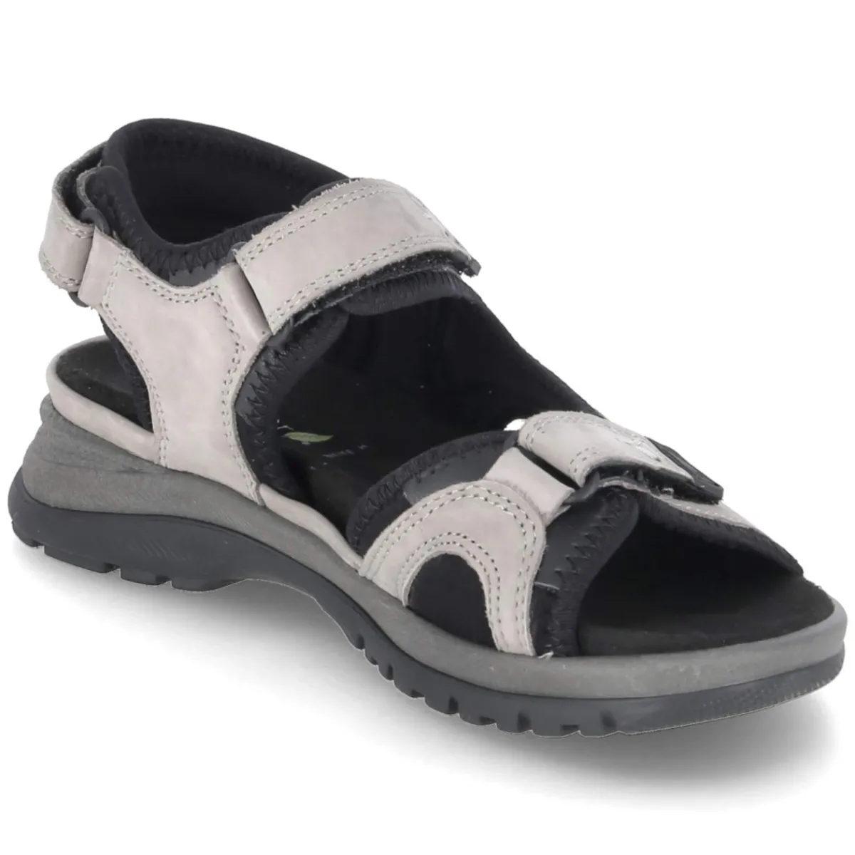 Die Sandalen H-SORA von Waldläufer verbinden sommerliche Leichtigkeit mit verlässlichem Komfort. Das graue Obermaterial aus hochwertigem Rauleder zeigt sich langlebig und anschmiegsam, während die offene Schuhspitze für angenehme Luftzirkulation sorgt. Drei praktische Klettverschlüsse erlauben passgenaue Justierung, der seitliche Steg stabilisiert unauffällig. Ein komfortables Wechselfußbett schafft wohltuende Dämpfung und lässt sich bei Bedarf durch eigene Einlagen ersetzen; die textile Decksohle und das leichte Futter steigern den Tragekomfort zusätzlich. Die flexible, rutschhemmende Profillaufsohle bietet soliden Grip auf verschiedensten Untergründen und unterstreicht den alltagstauglichen Charakter. Dezente Ziernähte geben dem Modell eine moderne, ruhige Note. Der Schnitt fällt normal aus. Modetipp: Ton in Ton mit grauer Leinenhose und weißem Hemd wirkt der Look edel, ein Akzentgürtel in Silber komplettiert das Outfit.