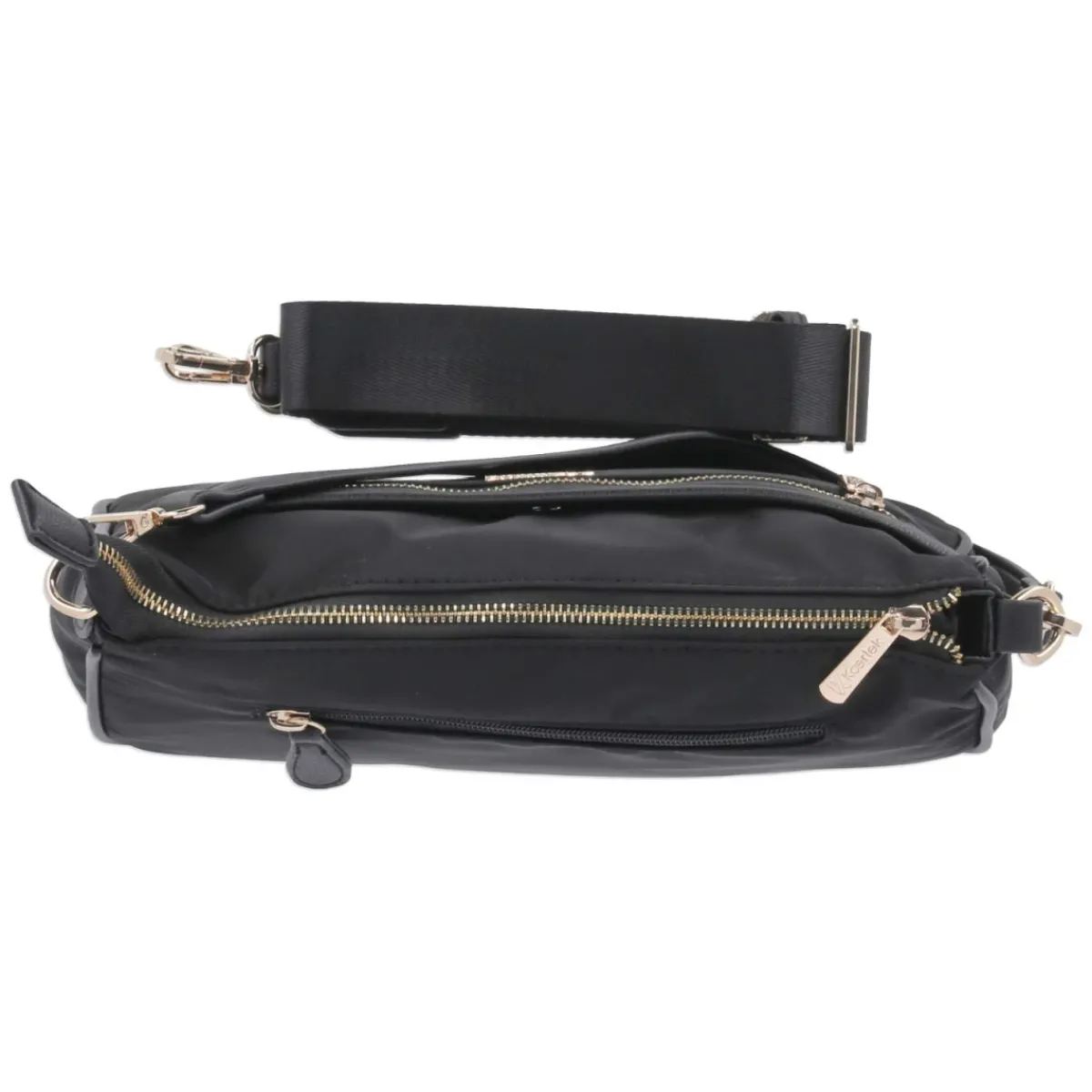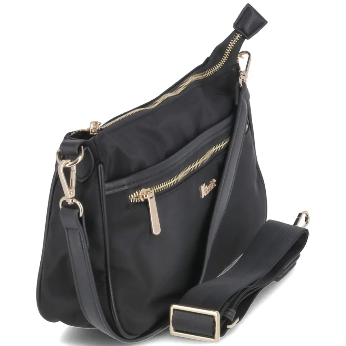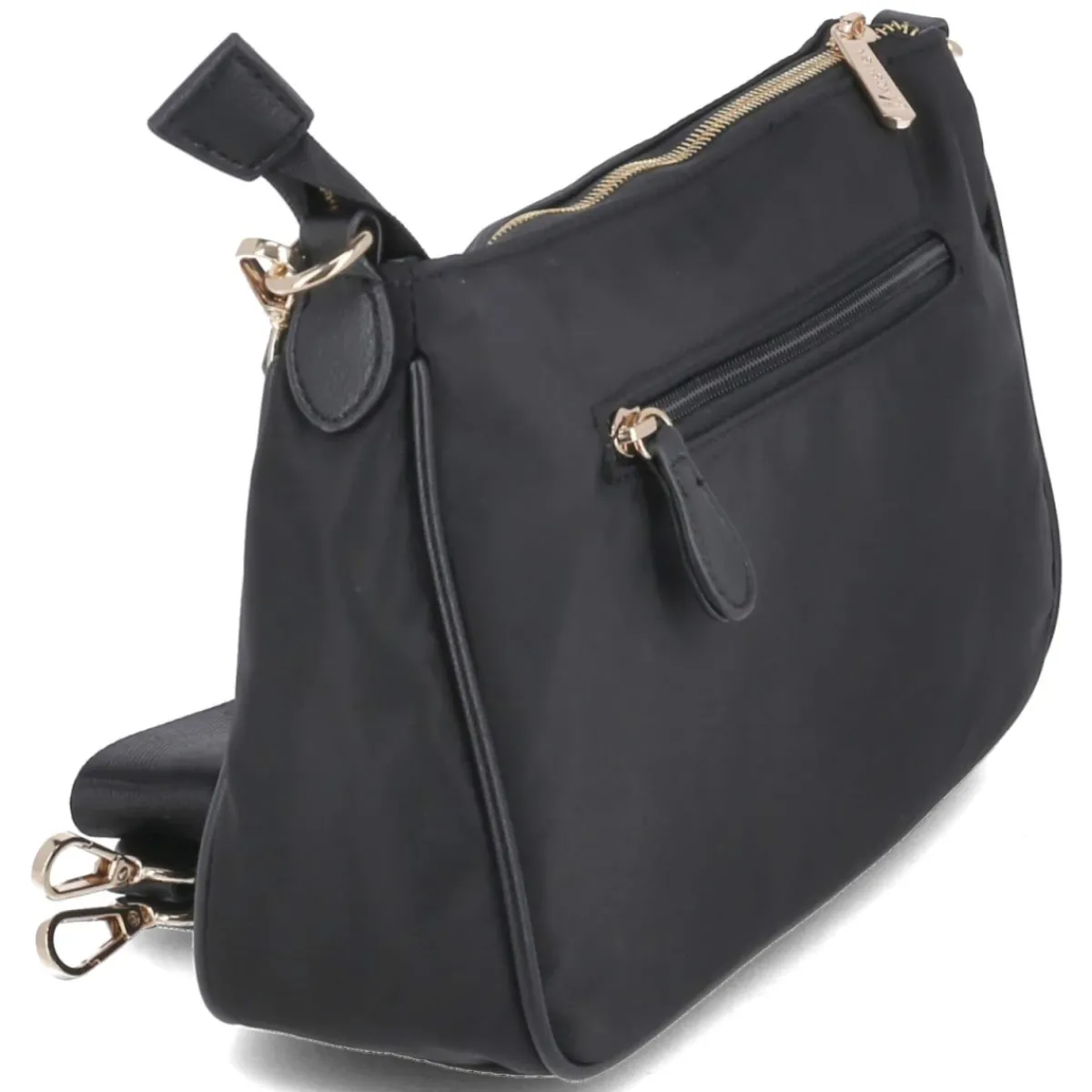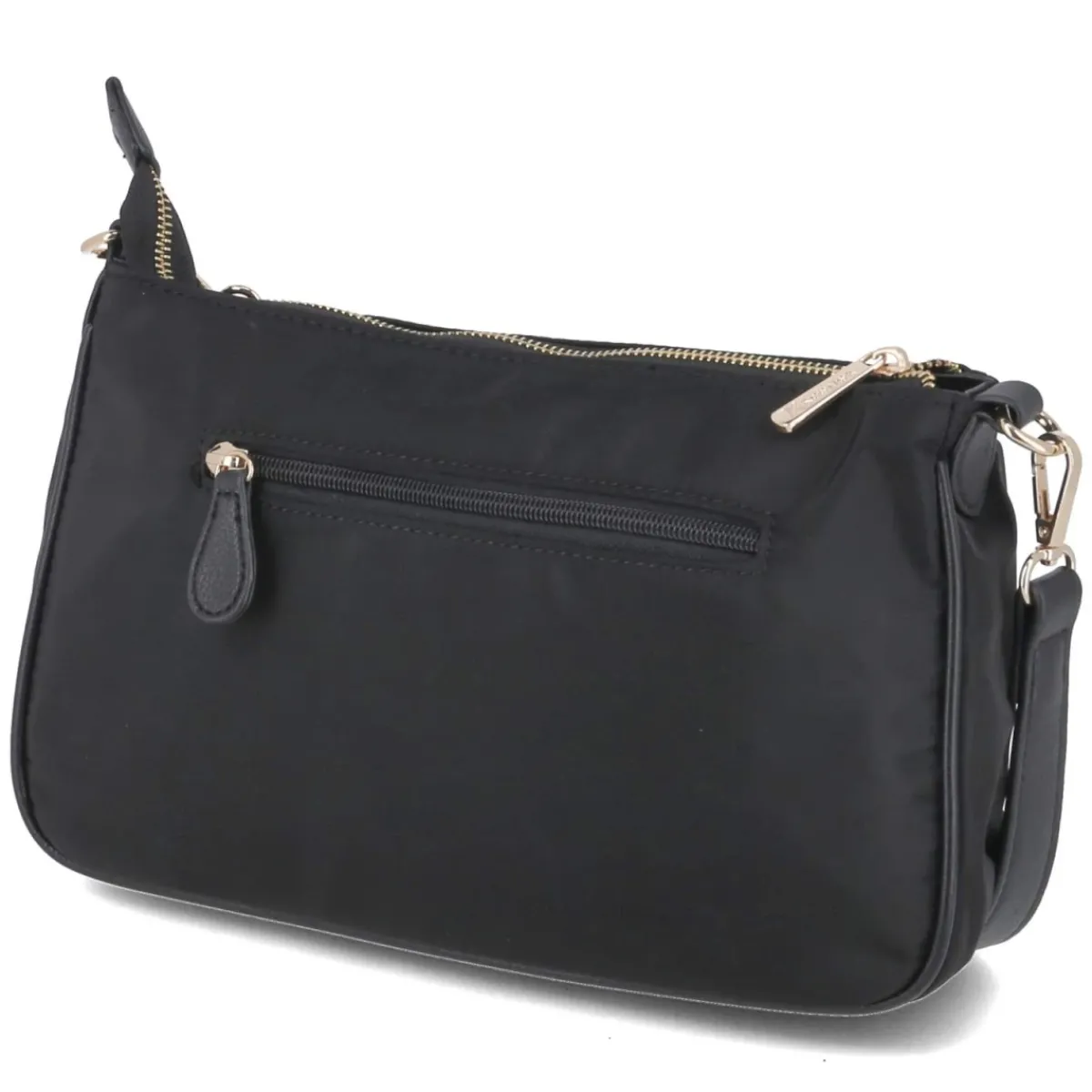 Elegante Schultertasche in klassischem Schwarz, die mit golden glänzenden Metallelementen dezente Raffinesse verleiht. Das Hauptfach schließt sicher mit Reißverschluss, innen sorgen zwei Steckfächer und ein zusätzliches RV-Fach für übersichtliche Ordnung. Außen bietet die Tasche vorn ein RV-Fach und ein Fach mit Magnetverschluss, hinten ein weiteres RV-Fach – perfekt für alles, was schnell griffbereit sein soll. Der verstärkte Boden hält die Form und schützt den Inhalt, das Format von ca. 18 x 30 x 8 cm fasst bei ca. 4 Litern Volumen alle Daily-Essentials. Flexible Trageoptionen durch einen kurzen Riemen von ca. 50 cm sowie einen langen, verstellbaren Gurt von ca. 100 cm, bequem auf der Schulter oder quer getragen. Zeitlos im Office, lässig in der Freizeit, stilvoll am Abend. Modetipp: Mit schwarzem Blazer, weißem Top, Cropped-Jeans und goldenen Creolen kombinieren, dazu Loafer oder Slingbacks für einen harmonischen Look.