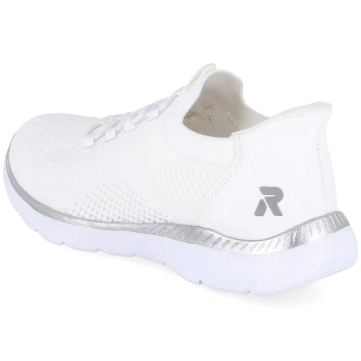 Der Slip-On-Sneaker von Rieker verbindet moderne Optik mit unkomplizierter Funktion. Das textile Obermaterial in Strick-Optik schmiegt sich sanft an den Fuß, während die runde Spitze und die verstärkte Ferse stabilen Halt sichern. Dank Verzicht auf Verschluss und einem Elastikband in Schnüroptik gelingt das Hineinschlüpfen im Alltag schnell. Die beste Memory-Foam-Fußbettung und die textile Decksohle sorgen für weichen Auftritt, das relaxte Leichtgewicht entlastet bei langen Wegen. Eine flexible Laufsohle mit silbernem oberen Rahmen setzt einen dezenten Akzent. Aus veganen Materialien gefertigt und größengetreu im Damenbereich konzipiert, zeigt sich das Modell in frischem Weiß vielseitig kombinierbar. Modetipp: Zu Cropped-Jeans in Hellblau und einem feinen Stricktop entsteht ein cleanes City-Outfit; eine leichte Trenchjacke rundet den Look ab.