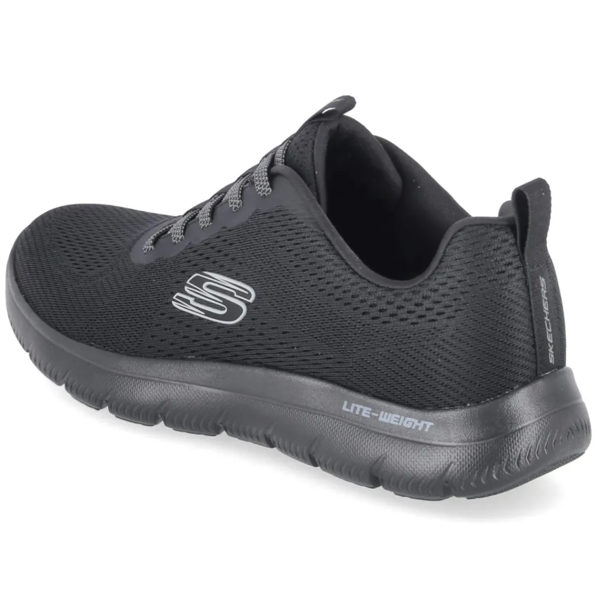 Der Skechers Sneaker SUMMITS ECKLER verbindet sportliche Leichtigkeit mit bequemem Alltagseinsatz. Die schwarze Meshoberfläche in Strick-Optik sorgt für atmungsaktive Performance, während Elastikbänder in Schnüroptik den Slip-on-Charakter ohne Verschluss sicher machen. Eine flexible Laufsohle mit griffigem Profil unterstützt souveränen Halt, das relaxt geringe Gewicht und die weiche Textildecksohle tragen zu angenehmem Tragegefühl über viele Stunden bei. Das bewährte Memory-Foam-Fußbett passt sich dem Fuß an und federt jeden Schritt sanft ab. Dank runder Schuhspitze und normal ausfallender Passform bleibt die Silhouette klassisch und vielseitig. Aus veganen Materialien gefertigt, präsentiert sich das Herrenmodell markentypisch mit dezenten Label-Akzenten und praktischen Anziehlaschen. Modetipp: Ton-in-Ton mit schwarzen Tech-Pants und einem leichten Nylon-Anorak kombinieren, dazu Sport- oder Laufsocken in Schwarz für einen cleanen Athleisure-Look.