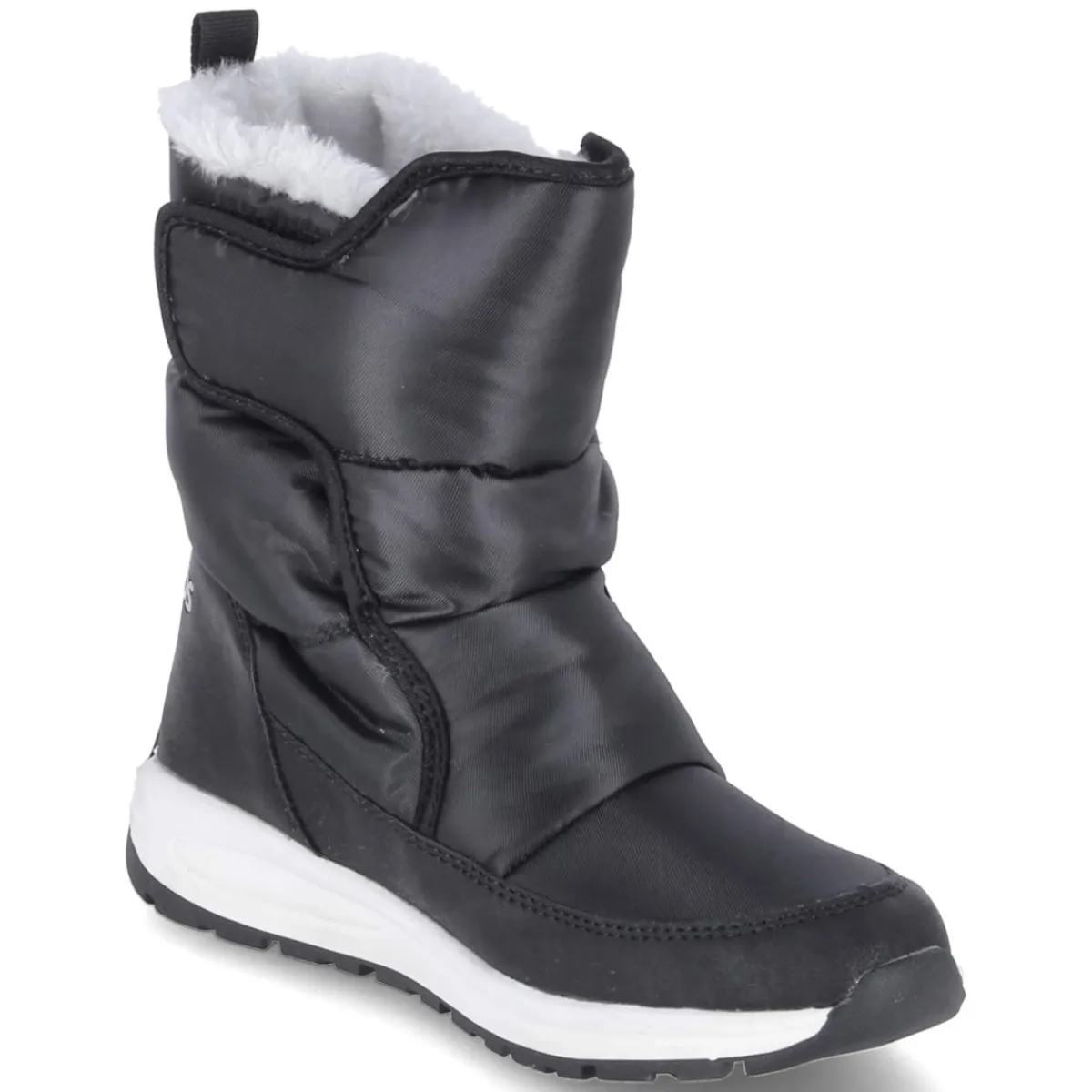 Der Snowboot K-PE BELLE RTX von Kangaroos begleitet kleine Entdecker zuverlässig durch nasse und kalte Tage. Das Obermaterial aus Textil und Synthetik ist wasserfest und zugleich atmungsaktiv, während das warme Kunstfellfutter ein behagliches Klima bewahrt. Ein gepolsterter Einstieg und die rund geformte Spitze sorgen für Komfort, die flexible, rutschhemmende Profilsohle gibt Halt auf glatten Wegen. Der bequeme Klettverschluss erleichtert das An- und Ausziehen und der verstärkte Zehen- und Fersenbereich erhöht die Robustheit im Alltag. Die gepolsterte, herausnehmbare Decksohle unterstützt den Fuß und lässt sich zum Trocknen einfach entnehmen. Optisch überzeugt das schwarze Design mit neongelben Highlights. Der Schuh fällt normal aus und eignet sich ideal für den Schulweg wie für den Spielplatz. Modetipp: Mit Softshellhose und wattierter Jacke in Schwarz wirkt der Look modern; passende Accessoires in Neon greifen die Akzente auf.