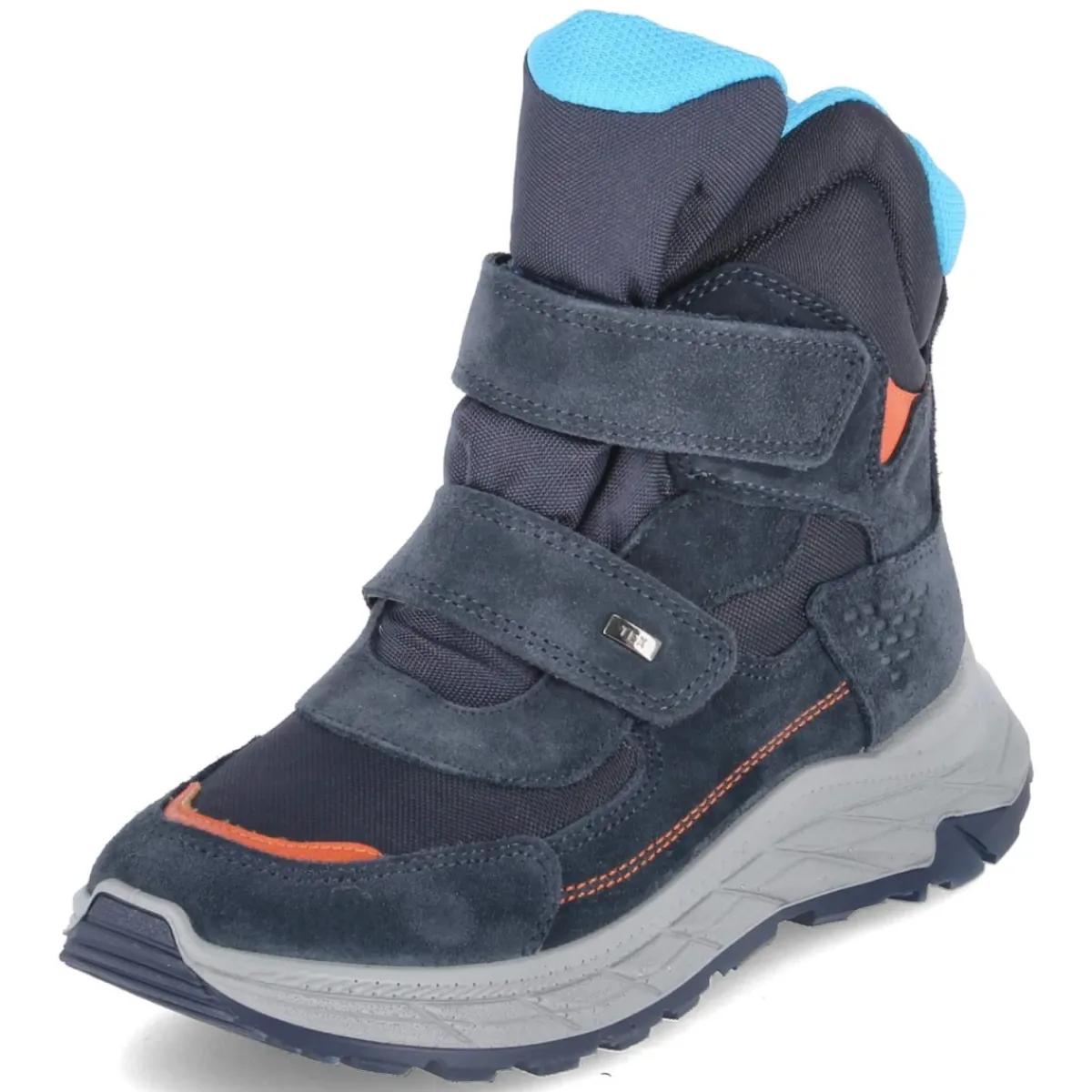 Die blauen Imac Snowboots für Kinder verbinden robuste Funktion mit sportlicher Optik. Der wasserfeste Material-Mix aus Leder und Textil mit IMACTEX hält Nässe zuverlässig ab, während das warme Futter an kalten Tagen für wohliges Fußklima sorgt. Dank rund zulaufender Spitze bleibt Zehenfreiheit erhalten, der gepolsterte Einstieg schont den Knöchel. Die flexible, rutschfeste Profilsohle bietet sicheren Halt auf winterlichen Wegen, verstärkte Fersen- und Zehenbereiche erhöhen die Strapazierfähigkeit. Der praktische Klettverschluss ermöglicht schnelles An- und Ausziehen, das Wechselfußbett lässt sich zum Lüften oder für Einlagen herausnehmen. Mit Textildecksohle und normal ausfallender Passform ideal für Alltag und Abenteuer im Schnee. Modetipp: Ton-in-Ton mit dunkelblauer Steppjacke und grauer Softshellhose kombinieren, farbige Mütze setzt einen frischen Akzent.
