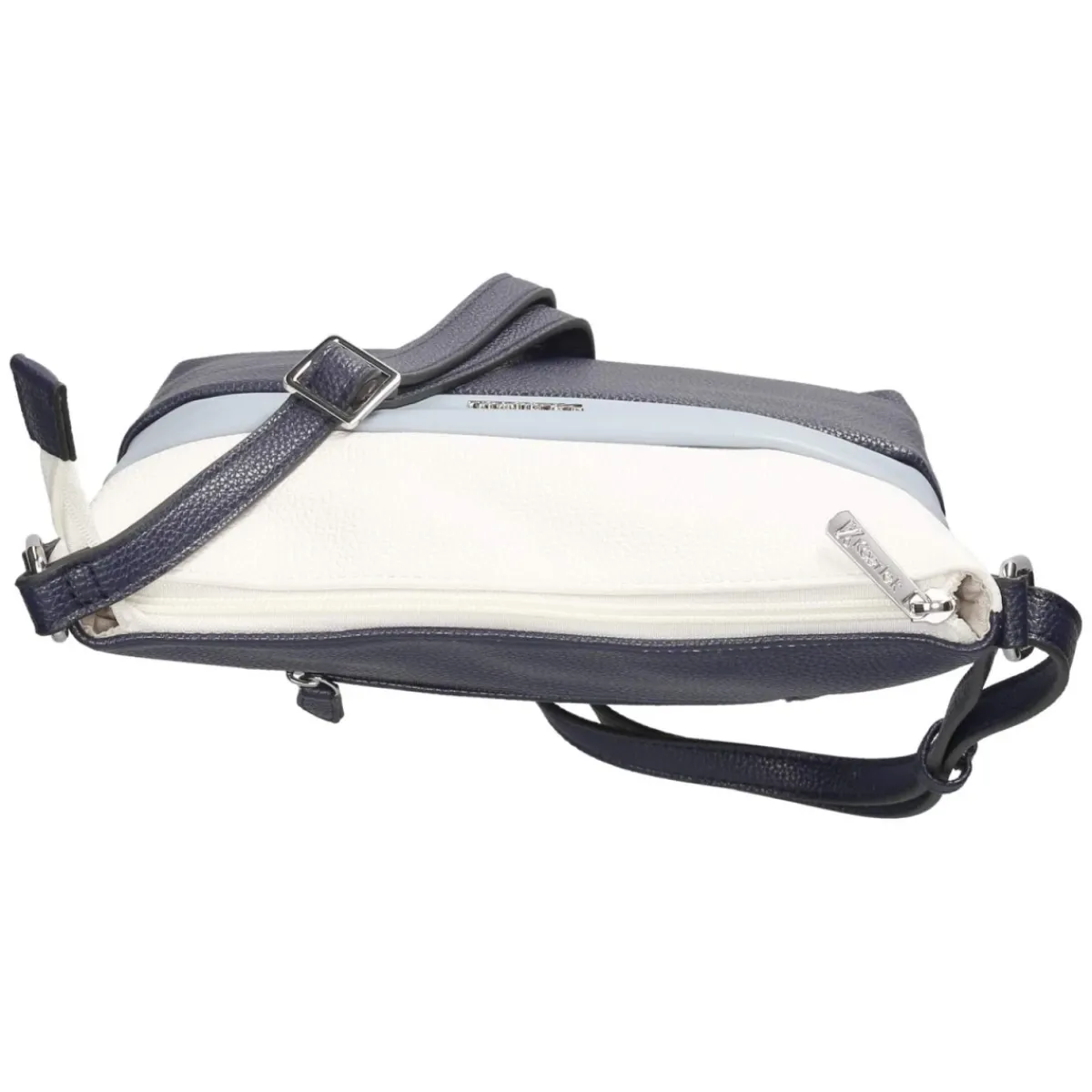 Maritime Streifen in Blau, akzentuiert von Weiß und Grau, verleihen dieser Umhängetasche eine zeitlos-frische Note. Mit ca. 25 x 26 x 7 cm und rund 4,5 Litern Volumen bleibt sie schlank, bietet jedoch erstaunlich viel Organisation. Das Reißverschlusshauptfach beherbergt zwei Steckfächer, ein Reißverschlussfach sowie zwei Stiftfächer, während vorne zwei zusätzliche Steckfächer mit Magnetverschluss schnellen Zugriff ermöglichen. Ein verstärkter Boden sorgt für Standfestigkeit, der verstellbare Schultergurt bis ca. 150 cm für angenehmen Tragekomfort – quer oder klassisch an der Schulter. Die gleichmäßige Streifenführung und die dezenten Kontraste unterstreichen sowohl Casual-Looks als auch cleane Office-Outfits. Modetipp: Zu einem navyfarbenen Blazer, weißer Bluse und hellen Loafern getragen entsteht ein moderner City-Chic, der die Streifen harmonisch aufgreift und auf elegante Weise betont.