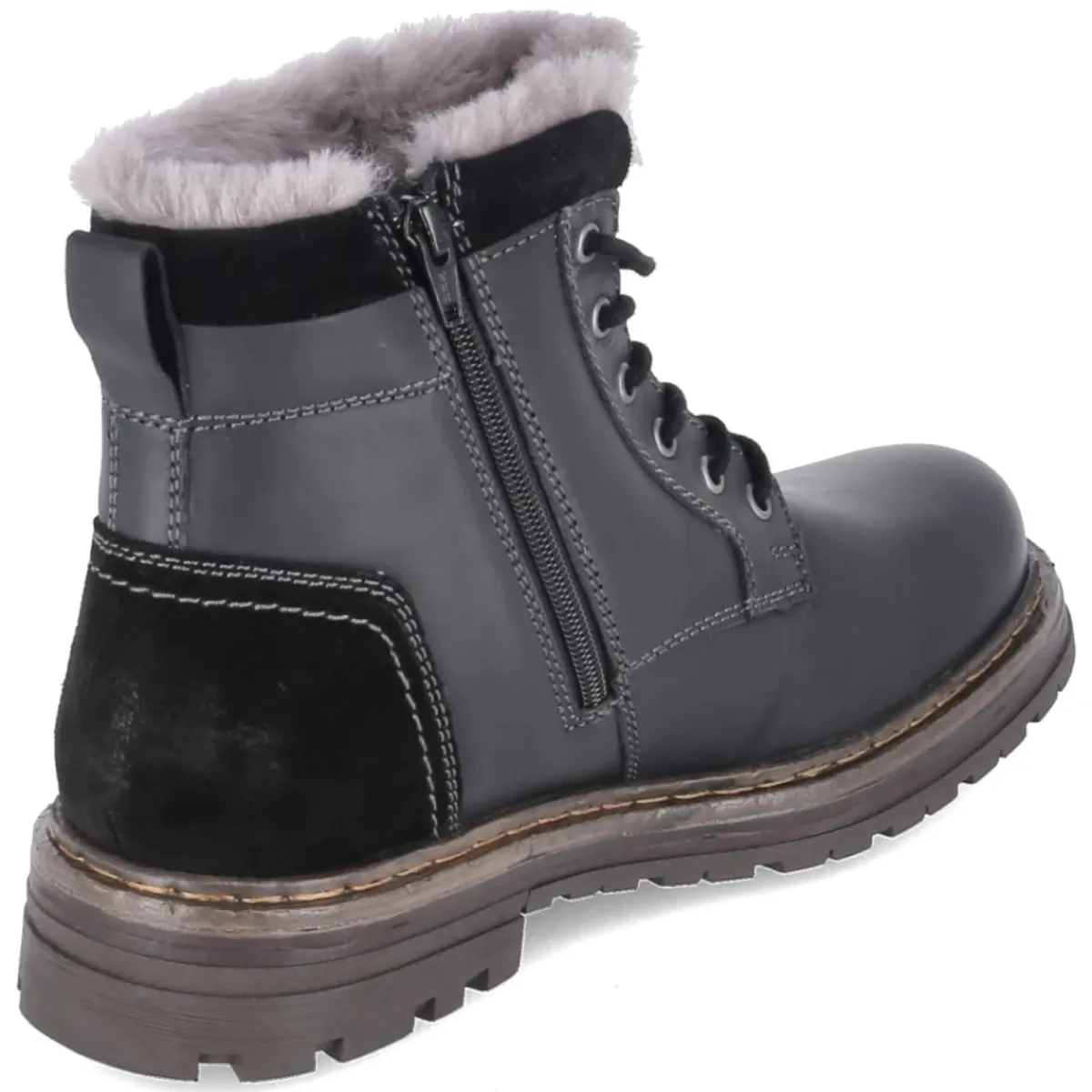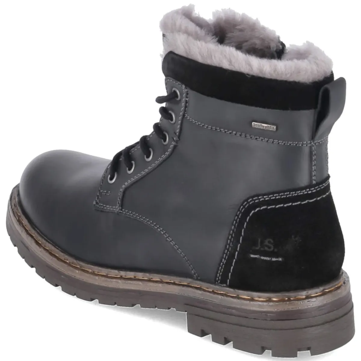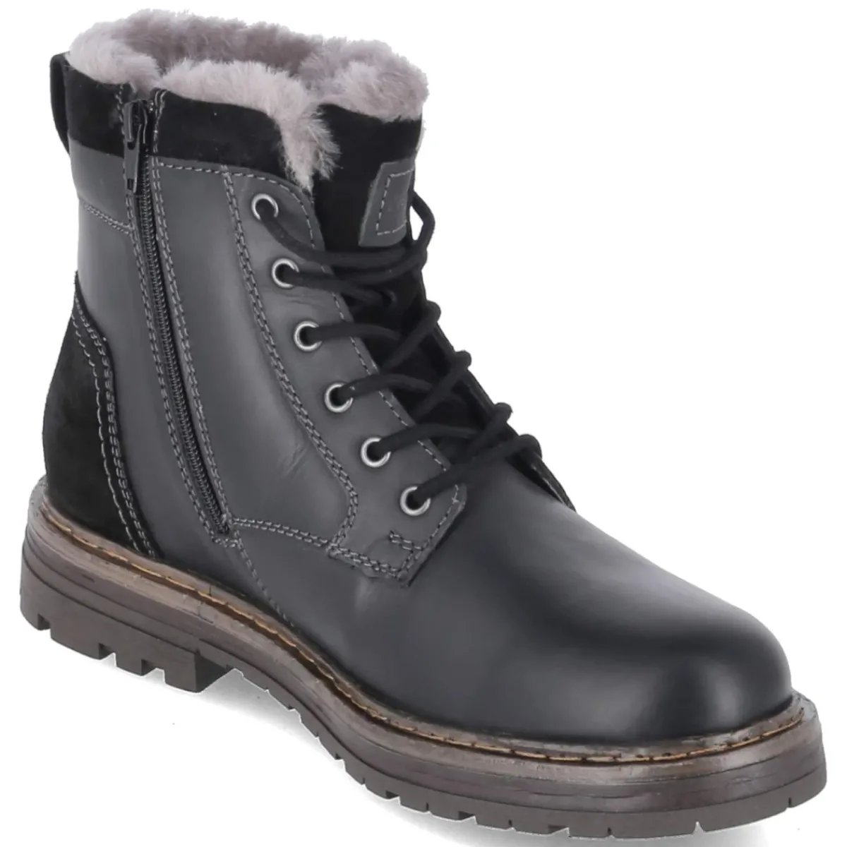Der Winterboot CURTIS 50 von Josef Seibel verbindet robuste Funktion mit klarer Linie. Glattes Oberleder in tiefem Schwarz, runde Kappe und ein standfester 4‑cm‑Blockabsatz liefern eine souveräne Silhouette, während wasserfeste und atmungsaktive Eigenschaften die Füße zuverlässig trocken und klimatisiert halten. Innen sorgt warmes Lammfellfutter für behagliche Isolation, ergänzt von einer ledernen Decksohle, gepolstertem Einstieg und verstärkter Ferse für dauerhaften Halt. Die flexible Profilsohle greift sicher auf nassem Asphalt wie auf verschneiten Wegen. Dank Schnürung und seitlichem Reißverschluss gelingt das Anziehen komfortabel und der Sitz bleibt präzise. Der Schuh fällt normal aus und bietet zahlreiche Kombinationsmöglichkeiten vom City‑Look bis zur Outdoor‑Casual‑Garderobe. Modetipp: Mit dunkler Raw‑Denim, Wollsocken in Melange und einem strukturierten Mantel entsteht ein ruhiger, hochwertiger Winterauftritt.