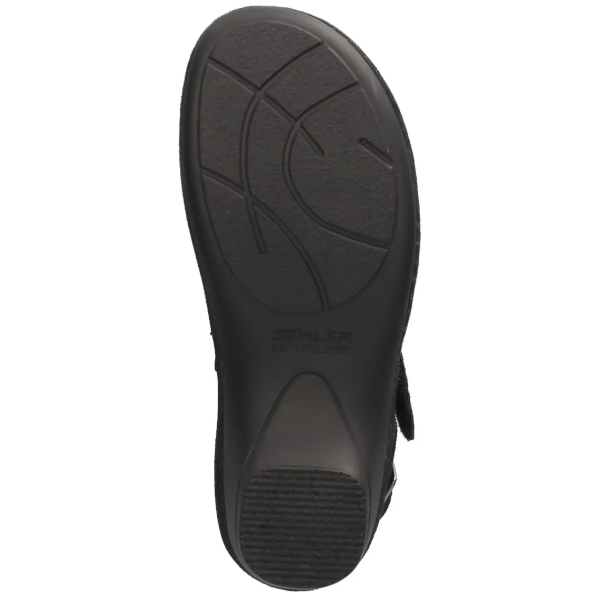 Diese Damen-Sandale von Semler verbindet edles Design mit wohltuendem Komfort. Weiches Rauleder in zeitlosem Schwarz umschmeichelt den Fuß, während atmungsaktives Echtleder innen für ein angenehm temperiertes Klima sorgt. Zwei Klettverschlüsse erlauben eine individuelle Anpassung, ergänzt von Schnalle und Druckknopf als praktische und dekorative Akzente. Schimmernde Schmucksteine setzen einen dezenten Glanz, die offene Spitze verleiht sommerliche Leichtigkeit. Ein vorgeformtes, gepolstertes Lederfußbett lässt sich bei Bedarf wechseln und unterstützt müheloses Gehen. Der 3,5 cm hohe Blockabsatz bietet sicheren Stand, die flexible, rutschhemmende Laufsohle verbessert die Traktion auf unterschiedlichen Untergründen. Das Modell fällt normal aus und eignet sich ideal für Erwachsene, die Wert auf Qualität legen. Modetipp: Besonders elegant wirkt die Sandale zu fließenden Midikleidern oder verkürzten Leinenhosen in Naturtönen.