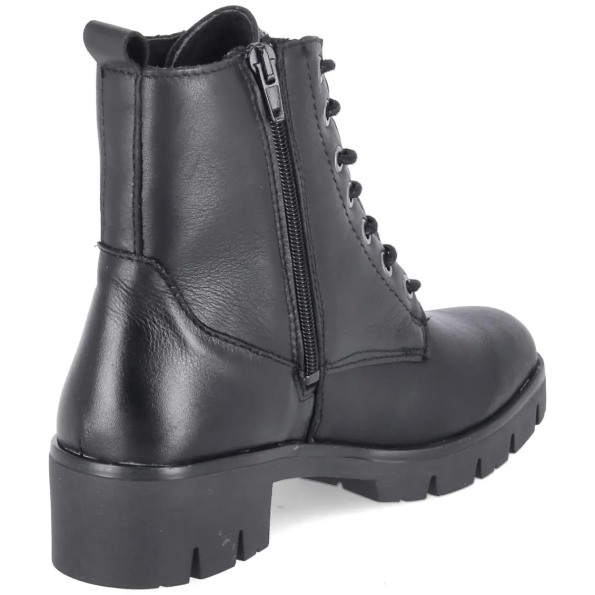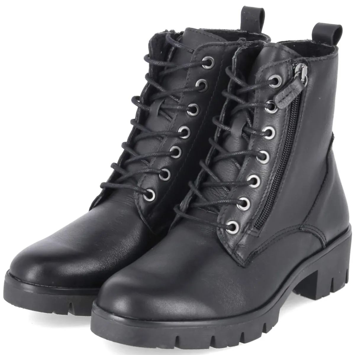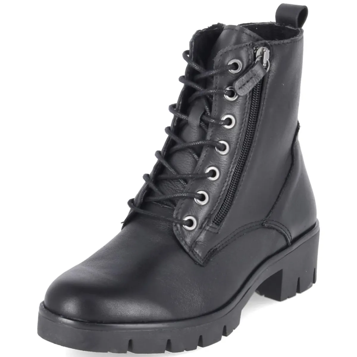 Schnürboots MOLLY 03 von Beliana verbinden markante Optik mit durchdachtem Komfort. Schwarzes Glattleder und die runde Spitze verleihen eine zeitlose Silhouette, während der 4 cm hohe Blockabsatz Stabilität im Alltag bietet. Das Duo aus Schnürsenkeln und seitlichem Reißverschluss ermöglicht schnelles An- und Ausziehen, ohne auf individuellen Halt zu verzichten. Innen sorgt ein leichtes Futter für angenehme Wärme an kühlen Tagen. Die rutschfeste Profilsohle gibt sicheren Grip auf nassem Asphalt, die verstärkte Ferse und die Anziehlasche erhöhen Langlebigkeit und Komfort. Das Wechselfußbett passt sich Bedürfnissen an und kann bei Bedarf gegen eigene Einlagen getauscht werden. Dank normaler Passform gelingt die Größenauswahl unkompliziert. Modetipp: Besonders lässig wirkt der Boot zu Strickkleid, dicker Strumpfhose und Oversize-Mantel; ein Crossbody-Bag in Leder rundet den urbanen Look ab.