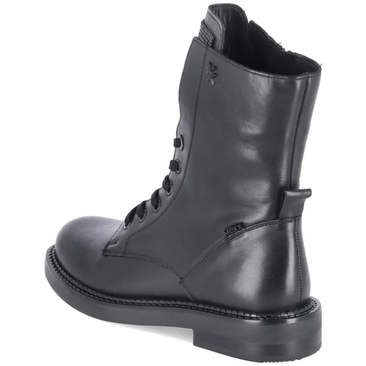Der Schnürboot PINA MABEL von Mexx verbindet urbanen Chic mit verlässlichem Komfort. Das schwarze Design mit eleganter Optik setzt auf einen robusten Material-Mix aus Leder und Synthetik, der Formtreue und Pflegeleichtigkeit vereint. Ein 3 cm hoher Blockabsatz sorgt für standfeste Schritte, die runde Schuhspitze wirkt zeitlos und schmeichelt dem Fuß. Schnürsenkel und seitlicher Reißverschluss erlauben individuelle Anpassung und schnelles An- und Ausziehen. Die weiche, synthetische Decksohle unterstützt das Fußwohl, während der verstärkte Fersenbereich zusätzlichen Halt gibt. Praktisch ergänzt: Anziehlasche für mühelosen Einstieg. Ein glitzernder Strass-Patch auf der Zunge setzt einen dezenten Glamour-Akzent. Der Passformhinweis „fällt normal aus“ erleichtert die Größenauswahl. Modetipp: Mit Midikleid in Wolloptik und strukturiertem Trench entsteht ein moderner City-Look, alternativ mit gerader Raw-Denim und schwarzem Blazer für lässige Eleganz.