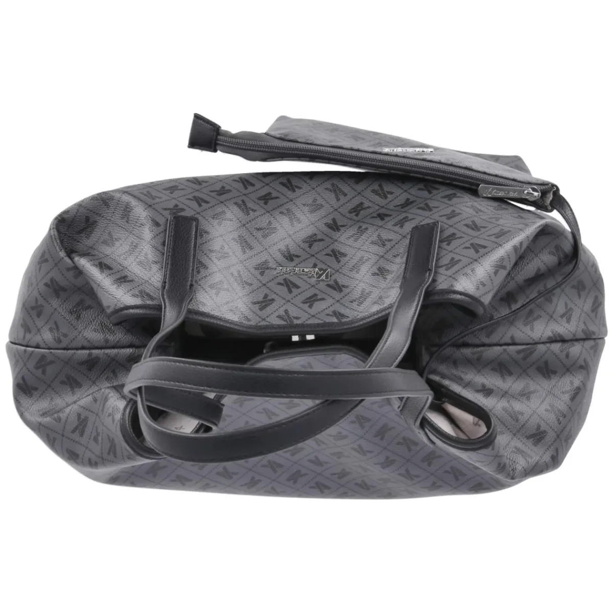 Der graue Shopper für Damen überzeugt mit bedrucktem Markenmuster und einem großzügigen Format, das Alltag und Office mühelos vereint. Mit ca. 30 x 40 x 20 cm und etwa 20 Litern Volumen bietet die Tasche solide Kapazität, während der verstärkte Boden für Formstabilität sorgt. Zwei feste Tragehenkel von ca. 50 cm Länge erlauben bequemes Tragen in der Hand oder über der Schulter. Das Hauptfach schließt schnell und sicher mit einem Magnetverschluss und gibt den Blick frei auf ein strukturiertes Innenleben: zwei Steckfächer, zwei Stiftplätze und ein Reißverschlussfach halten Essentials geordnet. Eine praktische Einsatztasche am kurzen Riemen bewahrt Kleinteile griffbereit auf. Das dezente Grau harmoniert mit dem markanten Print zu einem zeitlosen, urbanen Look. Modetipp: Für einen eleganten Kontrast den Shopper zu einem monochromen Wollmantel in Anthrazit und weißen Sneakers tragen – so wird das Muster subtil in Szene gesetzt.