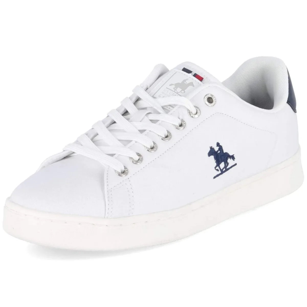 Der Sneaker EMPIRE von U.S. Grand Polo zeigt eine moderne Optik mit cleanem Weiß und dunkelblauer Fersenklappe. Das robuste Textilobermaterial aus Canvas legt die Basis für Langlebigkeit, während der verstärkte Fersenbereich zusätzliche Stabilität bietet. Runde Schuhspitze und klassische Schnürsenkel sorgen für zeitlosen Look, die flexible, rutschfeste Laufsohle für verlässlichen Grip im Alltag. Ein komfortables Wechselfußbett und die textile Decksohle erhöhen den Tragekomfort, Größenhinweis: fällt normal aus. Markendetails setzen dezente Akzente und unterstreichen die guten Kombinationsmöglichkeiten von Freizeit bis Smart Casual. Modetipp: mit indigoblauer Jeans, weißem T‑Shirt und leichten Wollcardigan tragen, dazu ein Ledergürtel in Dunkelblau, um die Fersenklappe elegant aufzugreifen.