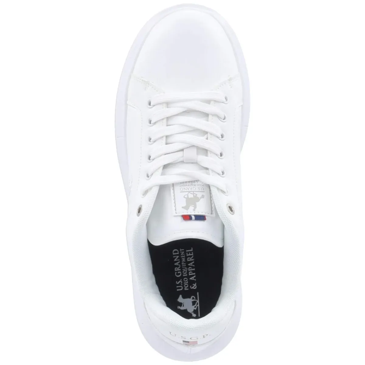 Der Sneaker PAUL von U.S. Grand Polo bringt eine frische, weiße Optik in den Alltag und setzt mit der Fersenklappe samt US-Flagge ein sportives Detail. Das pflegeleichte Synthetik-Obermaterial und die textile Decksohle sorgen zusammen mit dem gepolsterten Einstieg für angenehmen Tragekomfort. Ein relaxtes Leichtgewicht und die flexible, chunky Laufsohle geben Dynamik und Halt, während die runde Spitze und der klassische Schnürverschluss den cleanen Look abrunden. Das gepolsterte Fußbett unterstützt bei längeren Wegen, das Wechselfußbett ermöglicht individuelle Einlagen. Der Größenhinweis fällt normal aus und macht die Wahl unkompliziert. Modetipp: Zur Raw-Denim und einem cremefarbenen Strickpolo kombiniert, ergänzt der Sneaker smarte Casual-Outfits; mit Cargohose und Nylon-Anorak entsteht ein moderner Athleisure-Mix.