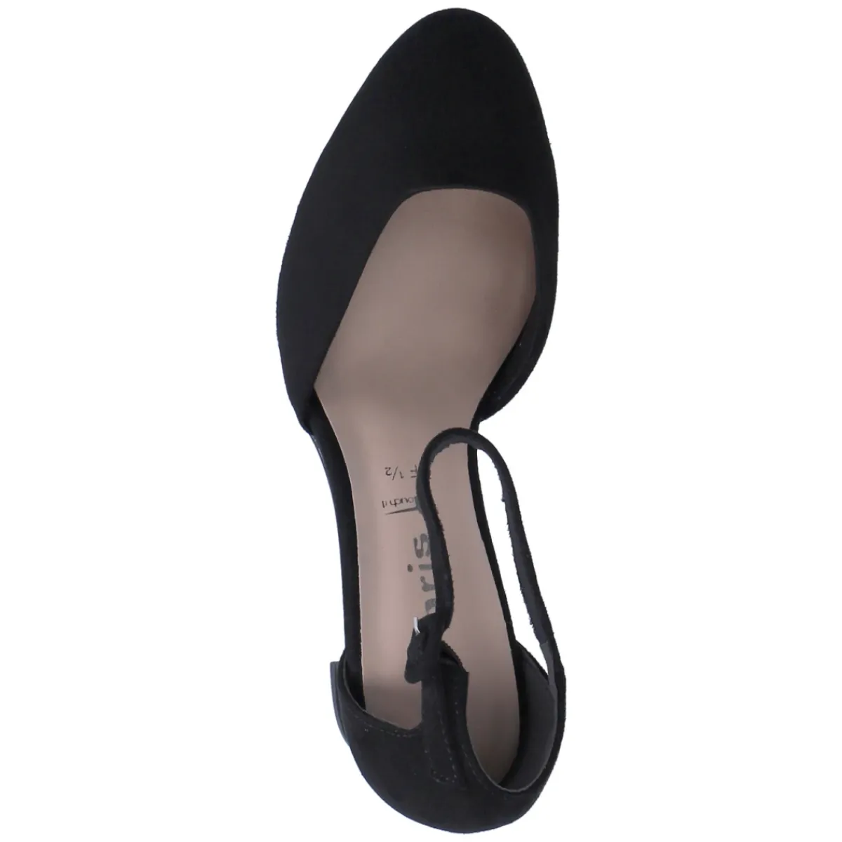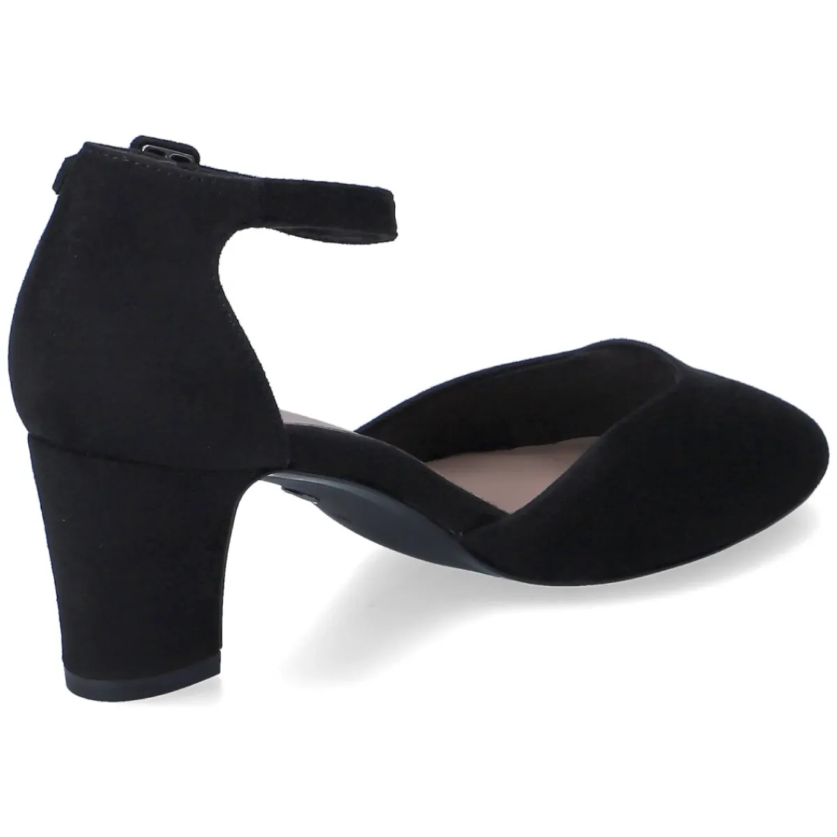 Die Spangenpumps von Tamaris verbinden eine edle Optik mit verantwortungsbewusstem Materialeinsatz: Das Modell ist aus veganen Materialien gefertigt und damit eine stilvolle Wahl für Damen. Der schwarze Textilbezug unterstreicht den eleganten Charakter, während die runde Schuhspitze und der verstellbare Verschluss mit Schnalle für klassische Linien sorgen. Ein 7 cm hoher Blockabsatz streckt die Silhouette und bietet dank seiner stabilen Form sicheren Auftritt. Für Komfort steht das weich gepolsterte Fußbett mit pflegeleichter Decksohle aus Synthetik. Der Passformhinweis „fällt normal aus“ erleichtert die Größenauswahl. Vielseitig kombinierbar, vom Business-Look bis zum Abendoutfit, setzt das Modell dezente Akzente. Modetipp: Mit Midi-Kleid und strukturiertem Blazer entsteht ein moderner, femininer Auftritt mit souveräner Note.