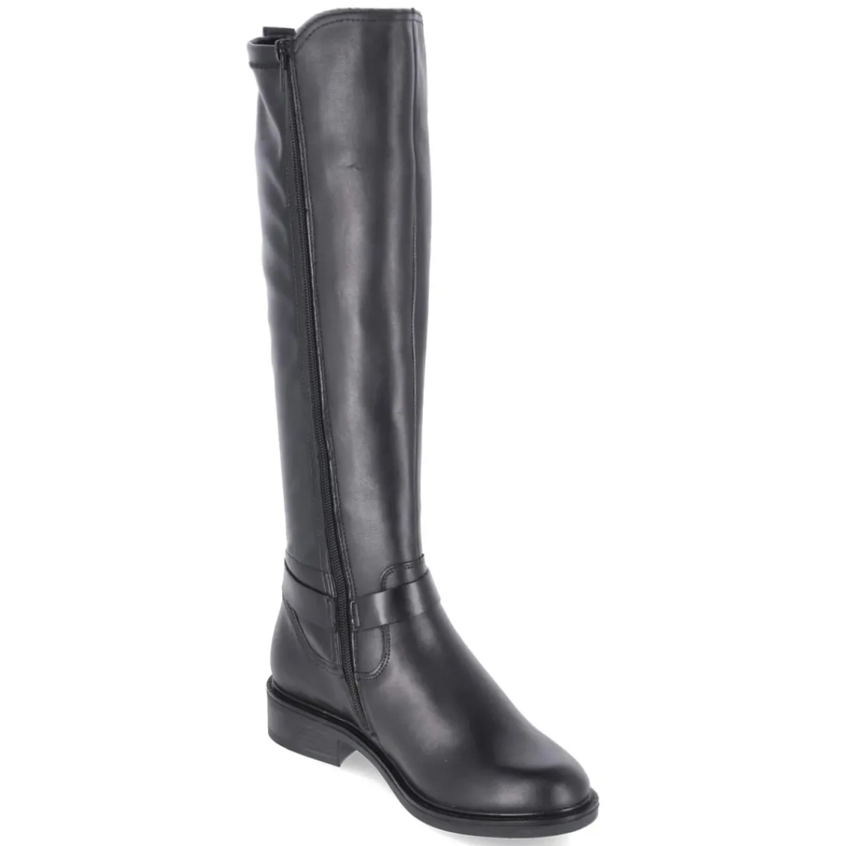 Dieser Stiefel von Remonte in klassischem Schwarz verbindet urbanen Look mit durchdachtem Komfort. Der robuste Material-Mix aus Leder und Synthetik erhält durch den zierenden Riemen mit Schnalle am Knöchel eine feminine Note. Mit rund zulaufender Spitze, 3,5 cm hohem Blockabsatz und flexibler, rutschfester Laufsohle entsteht ein souveränes Laufgefühl im Alltag. Der Varioschaft mit leicht stretchigem Schaft passt sich dem Bein an; Schafthöhe ca. 40 cm, Umfang ca. 36 cm. Leichtes Futter wärmt an kühlen Tagen, der unkomplizierte Einstieg über Reißverschluss und Anziehlasche spart Zeit. Wechselfußbett und verstärkter Fersenbereich sorgen für Stabilität, die Decksohle aus Textil erhöht den Tragekomfort. Fällt normal aus. Modetipp: Zu Strickkleid und Oversize-Mantel entsteht eine elegante Silhouette, akzentuiert mit einer strukturierten Crossbody-Bag.