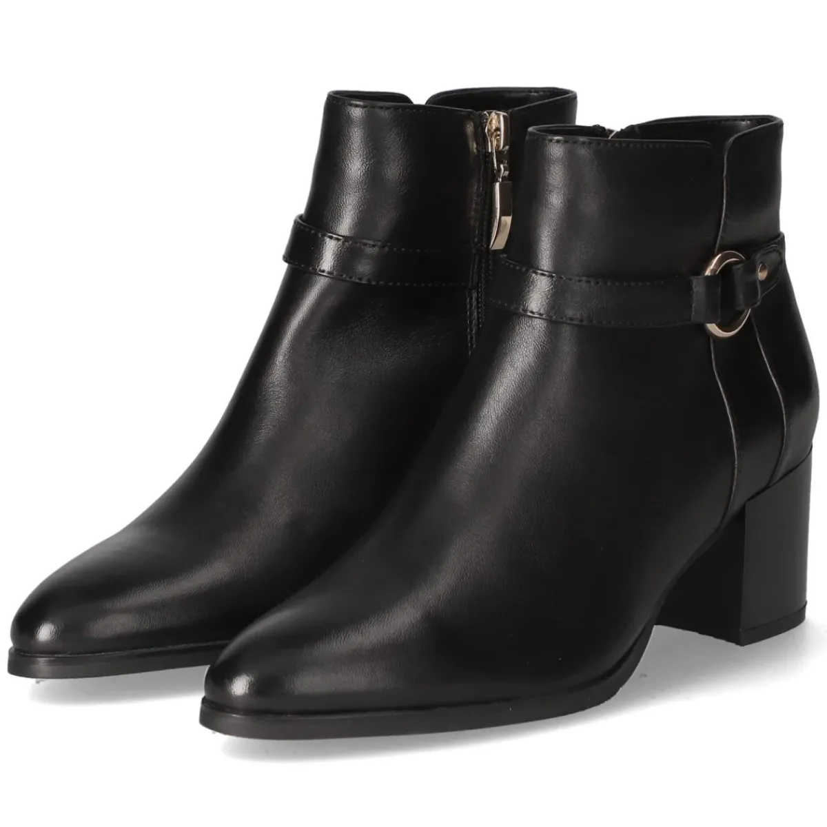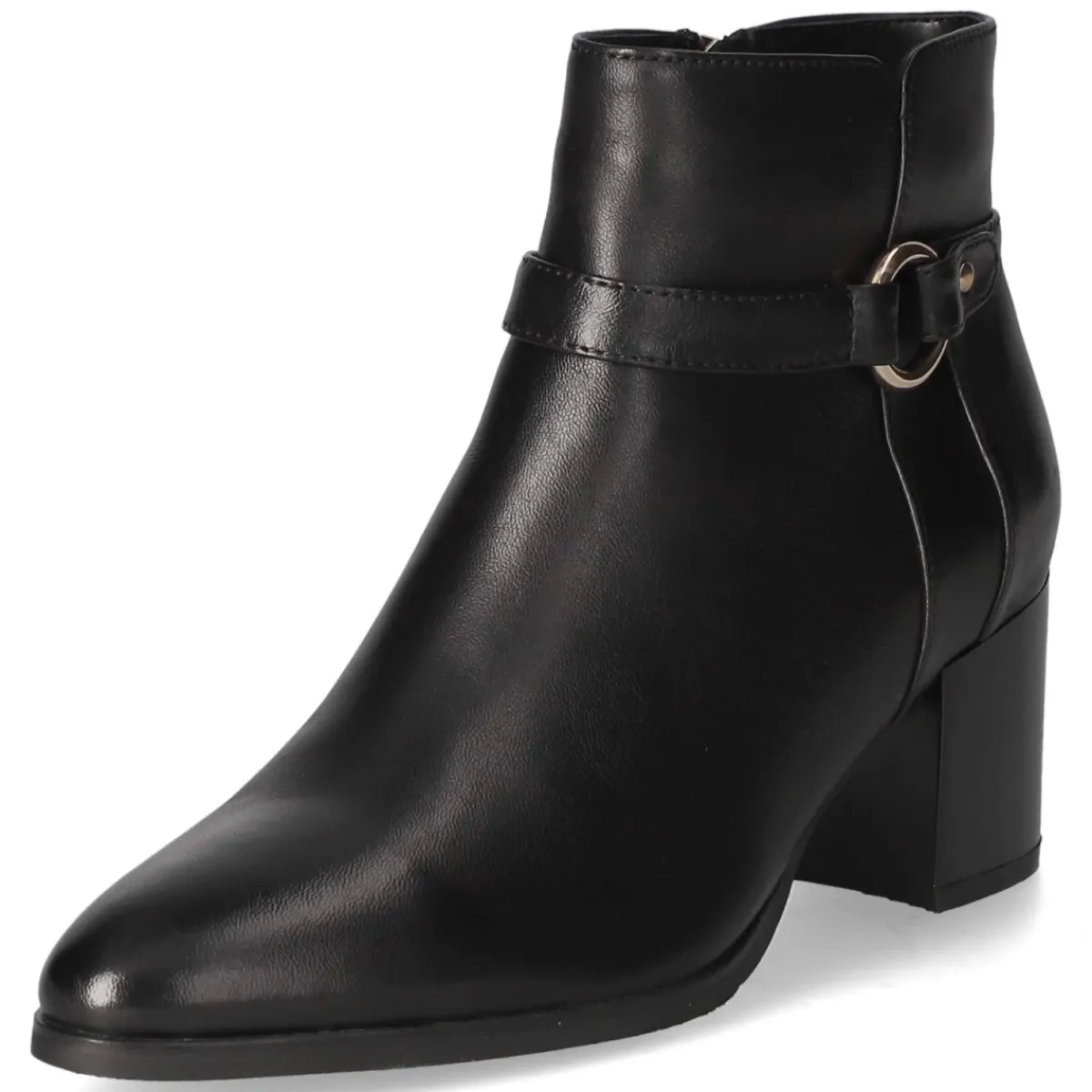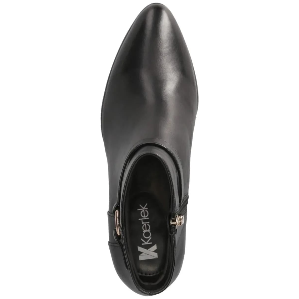 Kaerlek präsentiert eine klassische Stiefelette aus atmungsaktivem Echtleder, die mit zeitloser Eleganz und funktionalen Details überzeugt. Das schwarze Glattleder wirkt besonders hochwertig, während die runde Spitze und der 6 cm hohe Blockabsatz für eine feminine, dennoch standfeste Silhouette sorgen. Ein seitlicher Reißverschluss ermöglicht bequemes An- und Ausziehen. Die Decksohle aus Textil und Synthetik unterstützt ein angenehmes Fußklima, das leichte Futter bietet Wärme an kühlen Tagen. Für zusätzliche Stabilität sorgt eine verstärkte Ferse, die flexible, rutschhemmende Laufsohle gibt Sicherheit bei jedem Schritt. Als klassisches Modell mit Zierriemen und goldenem Schmuckdetail eröffnet es vielseitige Styling-Optionen und fällt in der Größe normal aus. Modetipp: In Kombination mit schmaler Denim, Oversize-Strick und goldfarbenem Schmuck entsteht ein mühelos urbaner Look.