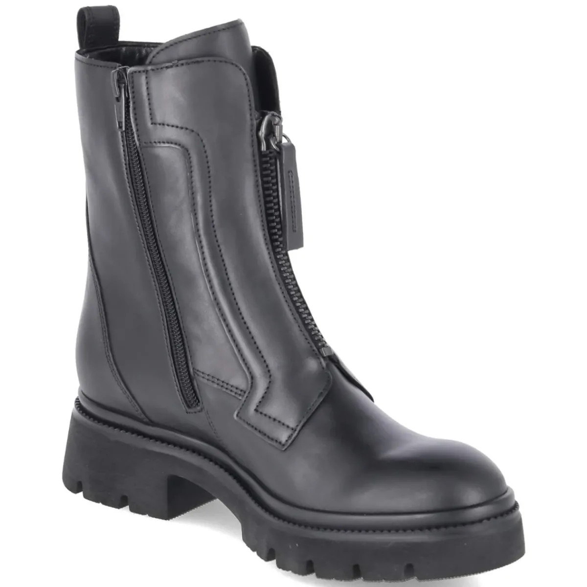 Die Gabor Stiefeletten in klassischem Schwarz verbinden moderne Optik mit verlässlicher Alltagstauglichkeit. Langlebiges Glattleder formt eine klare Silhouette mit runder Spitze, während der 4,5 cm hohe Blockabsatz stabilen Halt bietet und dezent die Silhouette streckt. Das Modell fällt normal aus und punktet mit bequemem Einstieg per Reißverschluss; ein zierender Frontreißverschluss mit abgestepptem Blatt setzt einen markanten Akzent. Die textile Decksohle, das leichte Futter für kühle Tage und das Wechselfußbett sorgen für angenehmen Tragekomfort und individuelle Anpassung. Eine rutschfeste Profilsohle gibt Sicherheit, der verstärkte Fersenbereich und die Anziehlasche erhöhen die Alltagstauglichkeit. Modetipp: Zu verkürzten Straight-Leg-Jeans und Wollmantel entsteht ein mühelos urbaner Look; mit Midikleid und blickdichten Strümpfen gelingt ein eleganter Übergangs-Style.