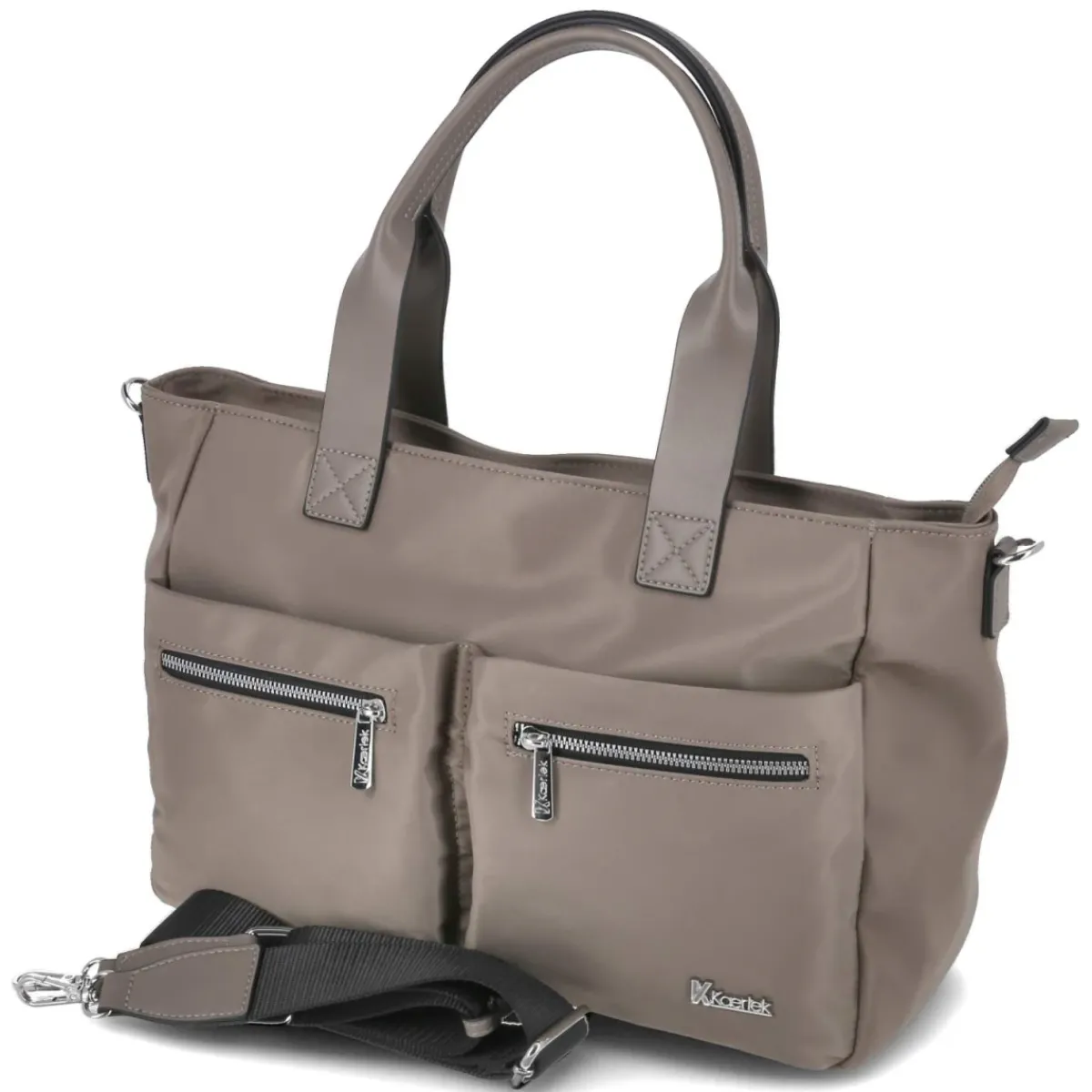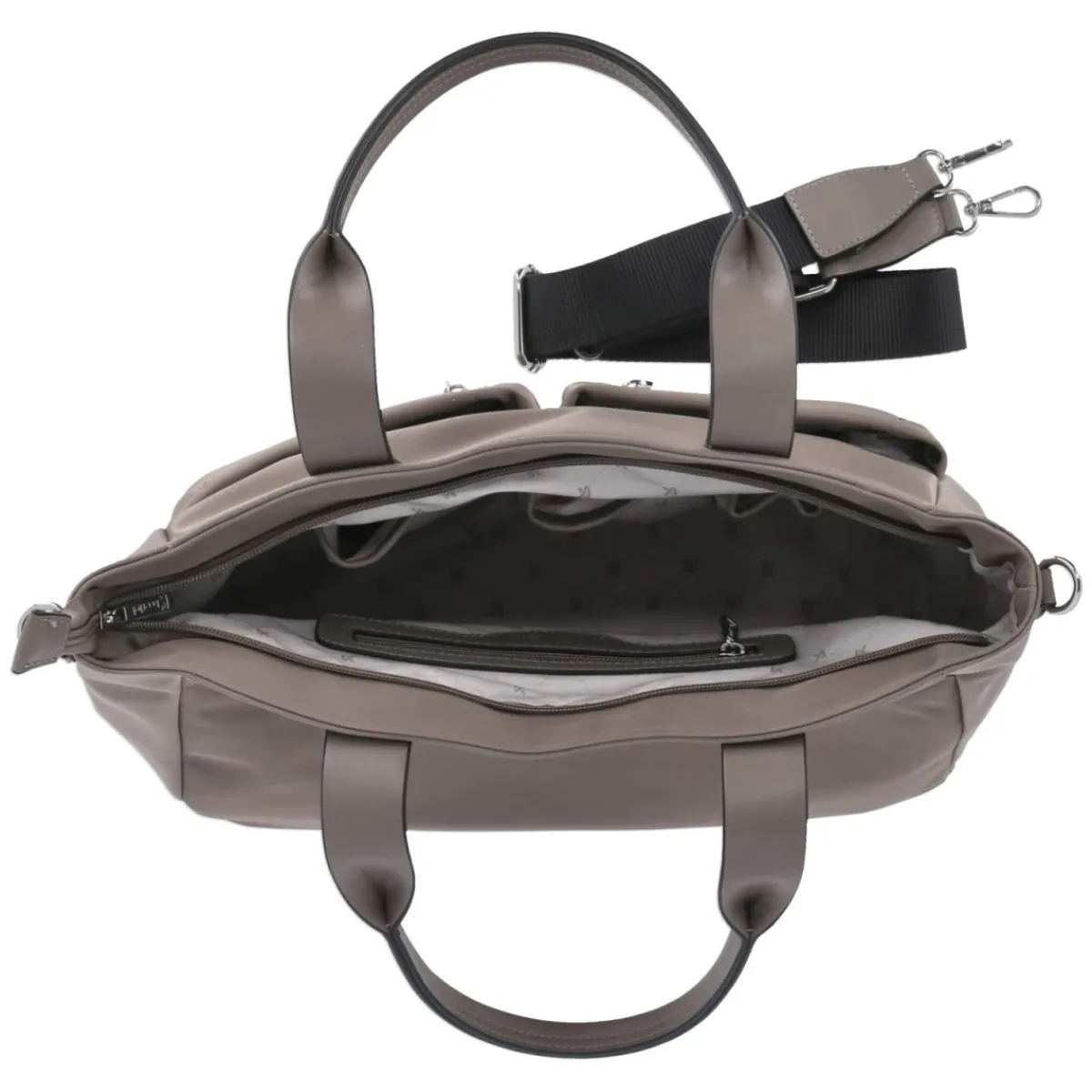 Zeitlose Eleganz trifft durchdachte Funktion: Diese Umhängetasche in Taupe überzeugt mit klarer Form und fein strukturierter Oberfläche. Das Format von ca. 24 x 32 x 15 cm bietet rund 10 Liter Fassungsvermögen – ausreichend für Tablet, Notizbuch, Geldbörse und eine kleine Trinkflasche. Ein sicherer Reißverschluss schließt das Hauptfach, während ein verstärkter Boden Stabilität und Standfestigkeit verleiht. Ordnung schaffen zwei vordere Steckfächer mit Magnetverschluss sowie zwei kleine Reißverschlussfächer, dazu kommen ein rückseitiges Reißverschlussfach, innen ein weiteres Reißverschlussfach und zwei Steckfächer. Der verstellbare, abnehmbare Schultergurt (ca. 130 cm) erlaubt das Tragen entspannt über der Schulter oder quer. Modetipp: Zu sandfarbenem Trenchcoat, cremefarbenem Strick und Loafern getragen entsteht ein harmonischer, moderner City-Look.