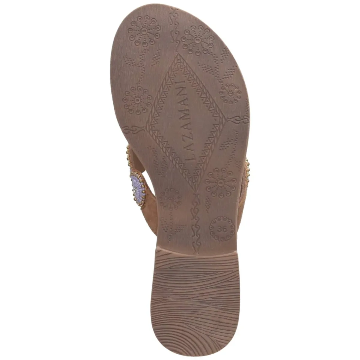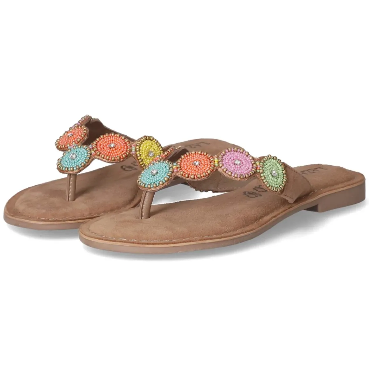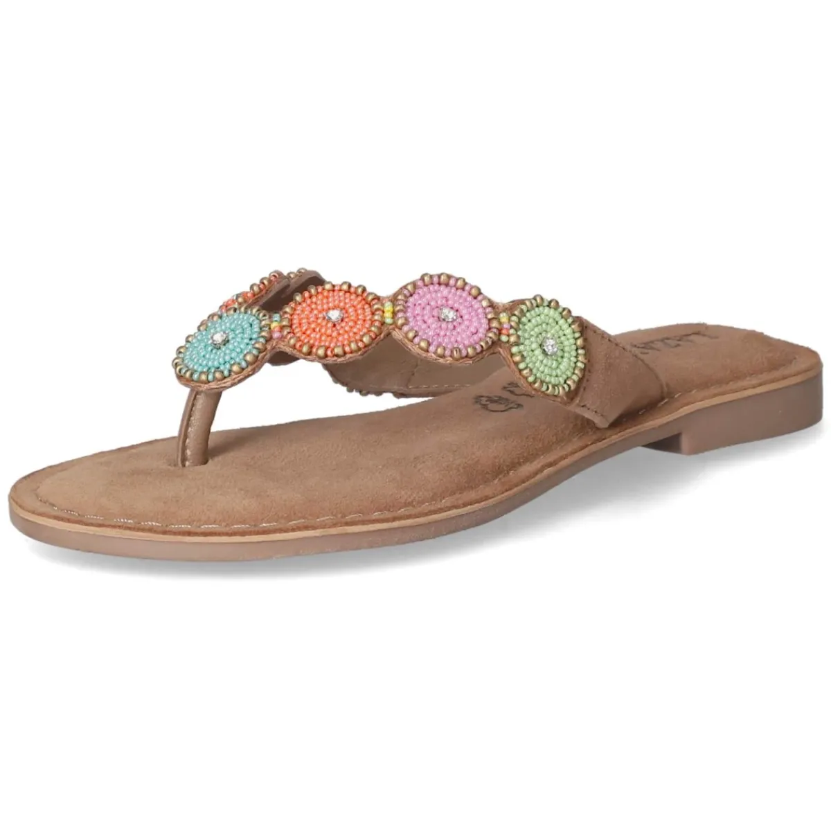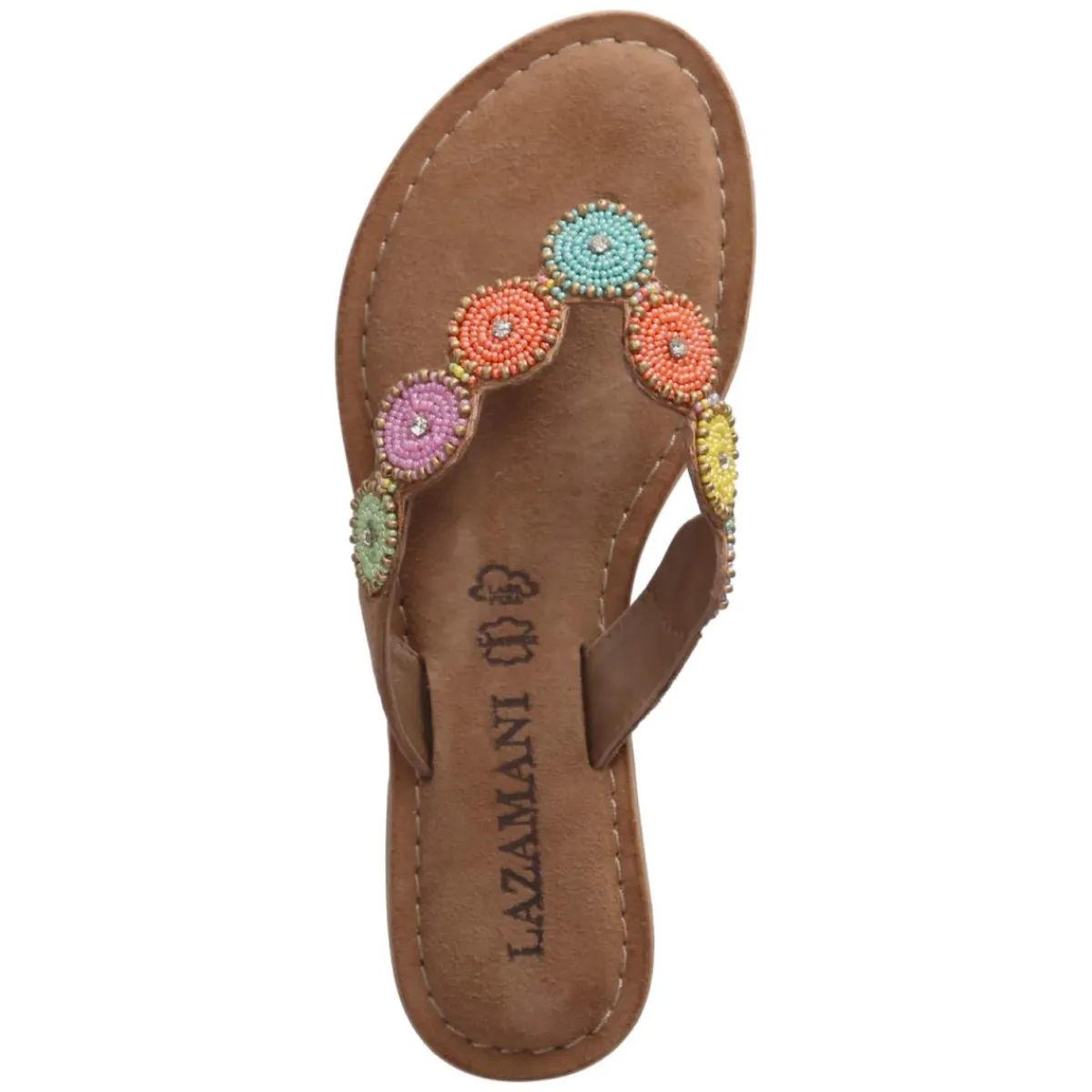 Dieser Zehentrenner von LAZAMANI verbindet entspannten Sommercharme mit wertigen Materialien. Das mehrfarbige Riemchendesign setzt einen lebendigen Akzent, während robustes Echtleder und textile Details harmonisch zusammenspielen. Die offene Schuhspitze unterstreicht die luftige Anmutung, die lederne Decksohle und das angenehm weiche Lederfutter sorgen den ganzen Tag über für Komfort. Dank des slip-on Designs ohne Verschluss gelingt das Anziehen unkompliziert, der Schnitt fällt normal aus und bietet eine zuverlässige Passform. So entsteht ein lässiger, sympathischer Look, der sowohl am Strandboulevard als auch in der Stadt überzeugt. Modetipp: Ideal zu einem fließenden Leinenkleid und Korbtasche kombinieren; zarte Gold-Accessoires greifen die warmen Ledertöne elegant auf.